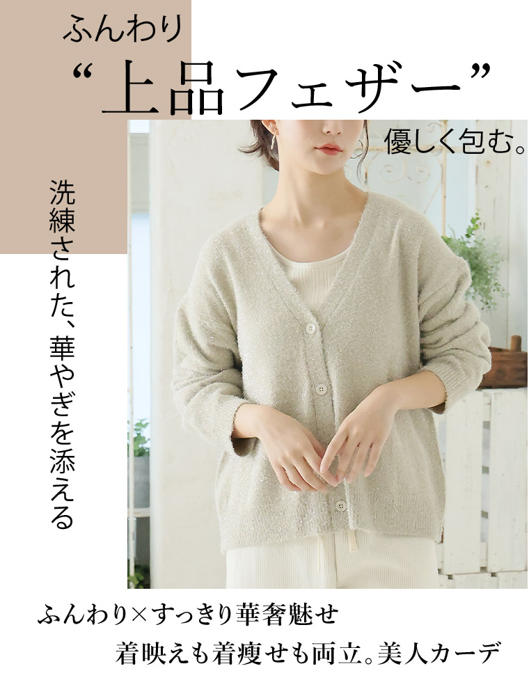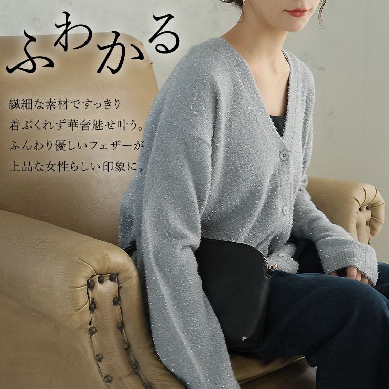 厚くないから今から着やすい!軽くて華やかラメフェザー。