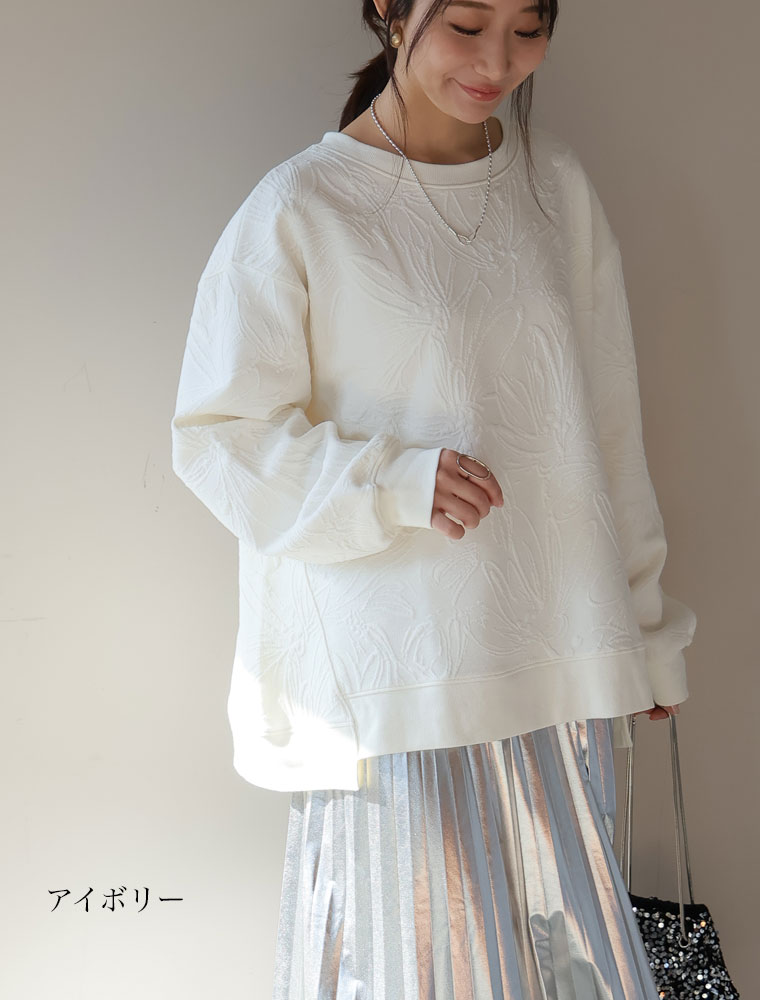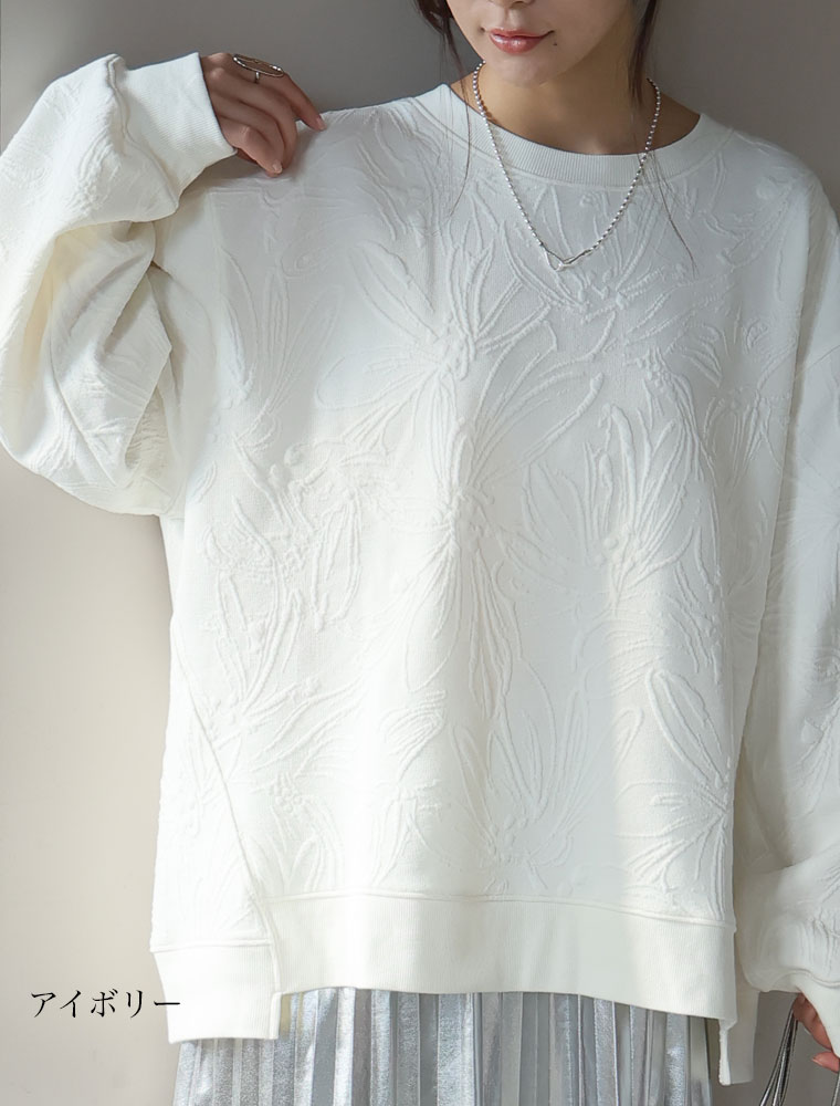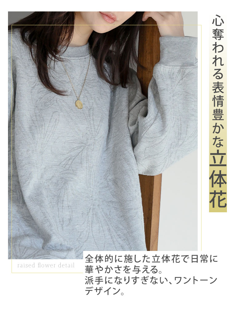 立体花が着映える花柄ジャガードプルオーバー