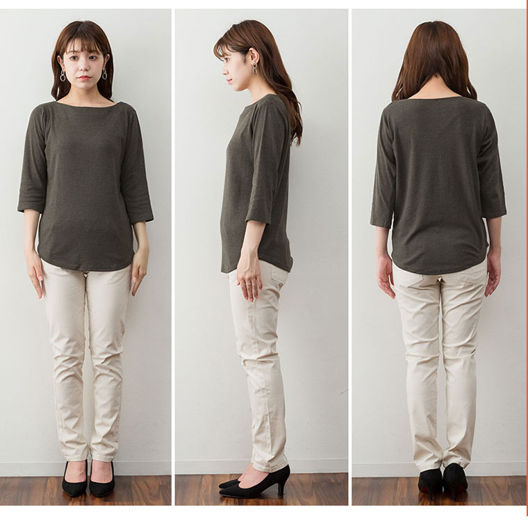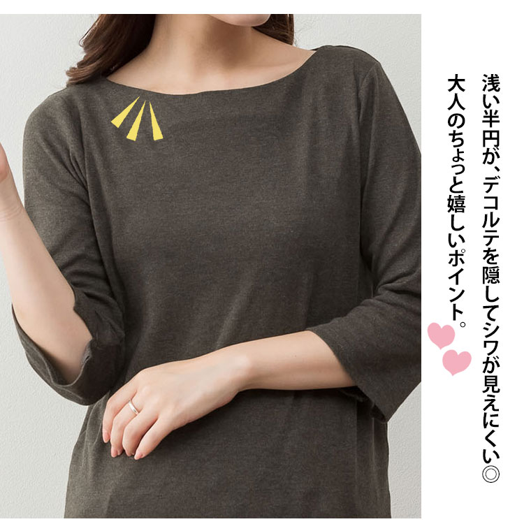 浅い半円が、デコルテを隠して、シワが見えにくい。大人のちょっと嬉しいポイント!