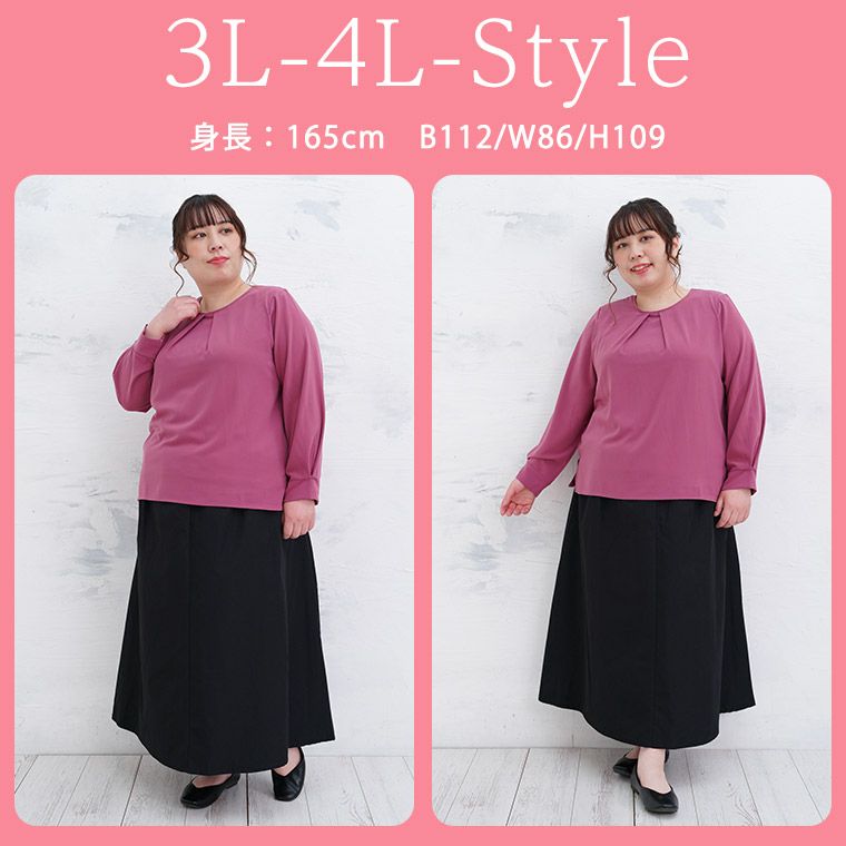 オリジナル シャツ トップス LL 3L 4L 5L 6L 春 春物 春服 ぽっちゃり ゆったり 胸周り 二の腕カバー 長袖 リン きれいめ あったか Rin こっそりあったか インナー要らずの 綿100起毛裏地付 タックブラウス 【セレモニー】 | 大きいサイズの通販ならハッピーマリリン
