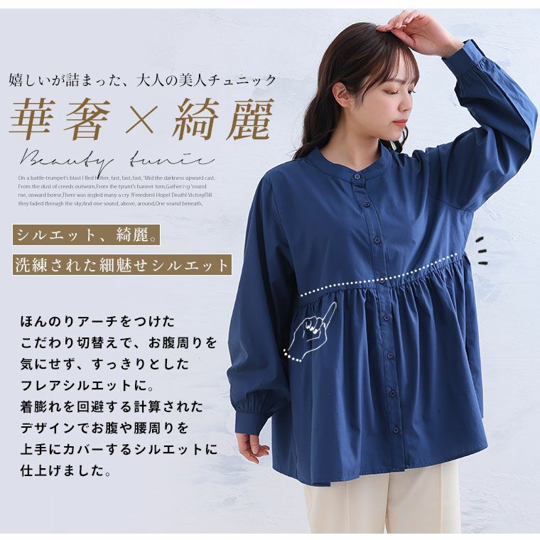 オリジナル シャツ トップス LL 3L 4L 5L 6L 7L 8L 春 春物 春服 ぽっちゃり ゆったり リン きれいめ セレモニー チュニック丈 上品 高見え プラスサイズ Rin 【選べる丈】 2WAY タック 華やかブラウス【セレモニー】 | 大きいサイズの通販ならハッピーマリリン