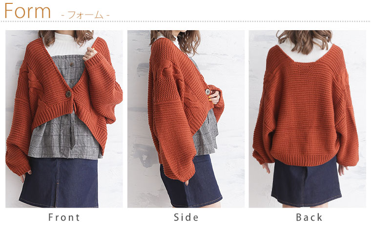 ゆったりシルエットでさっと羽織れる。バルキーアクリルケーブルニット長袖カーディガン