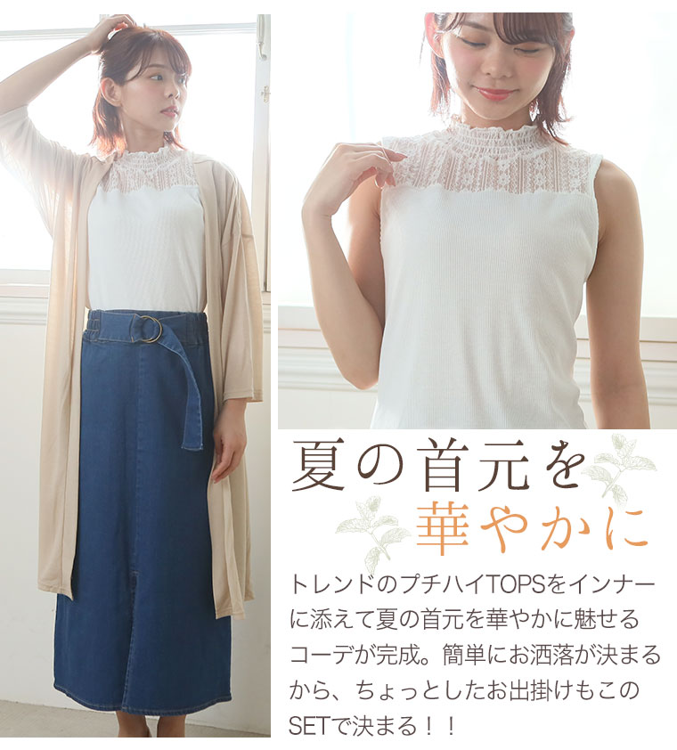 さらりとラフに着こなして体型カバー♪夏の首元をレースで華やかに