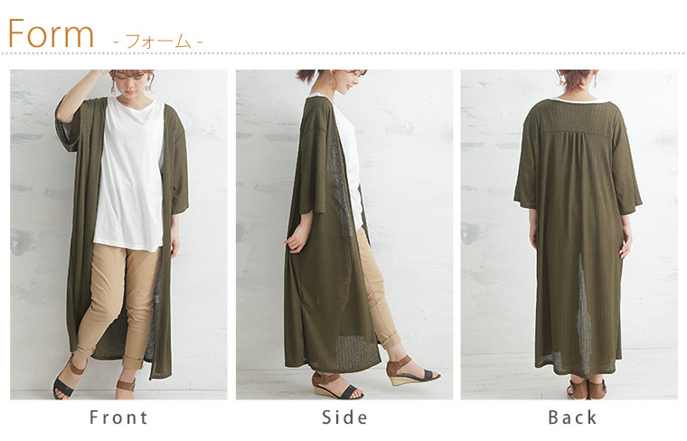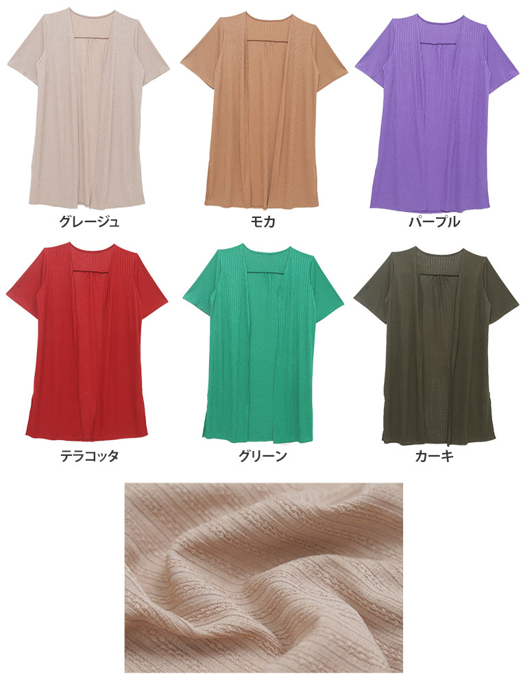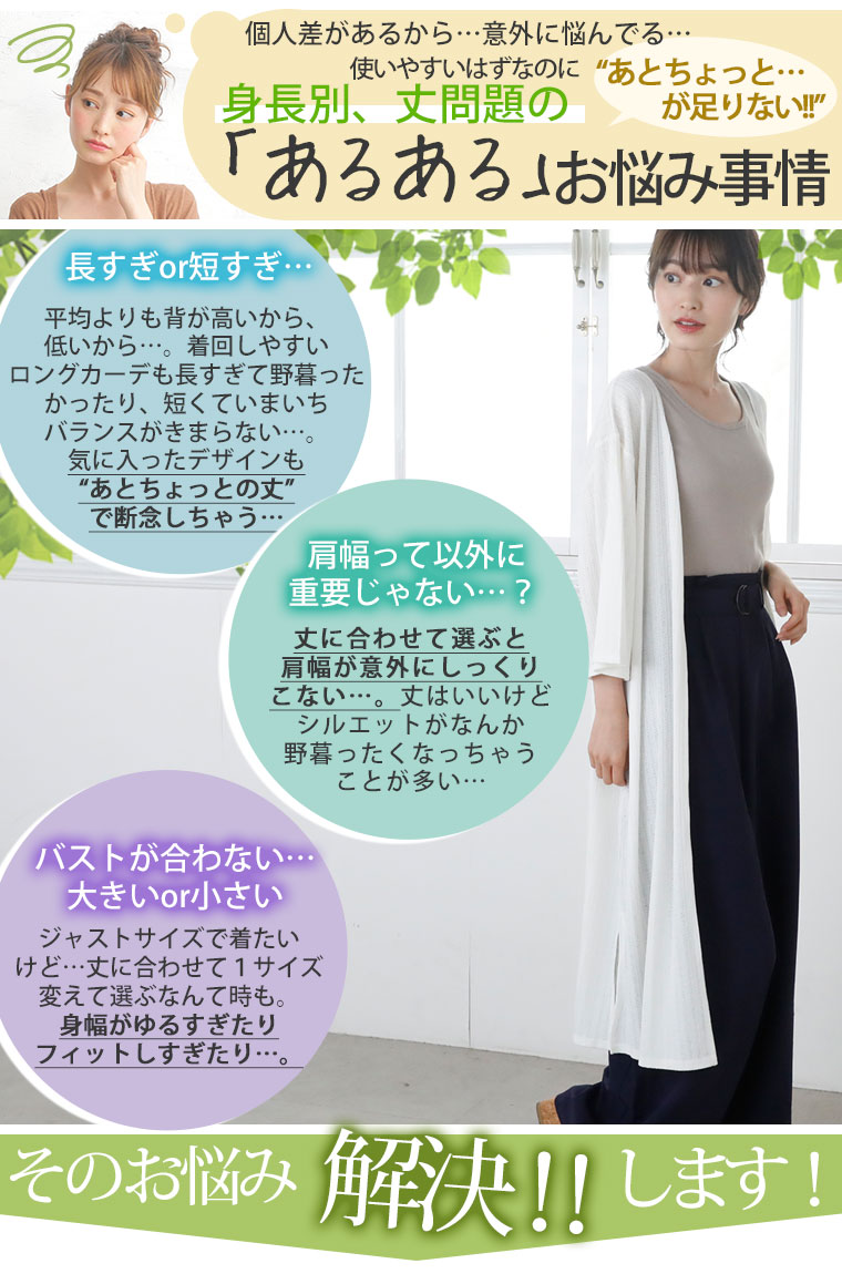 選べる身長別、細魅せ美人なスリット入りカットソーリブロングカーディガン
