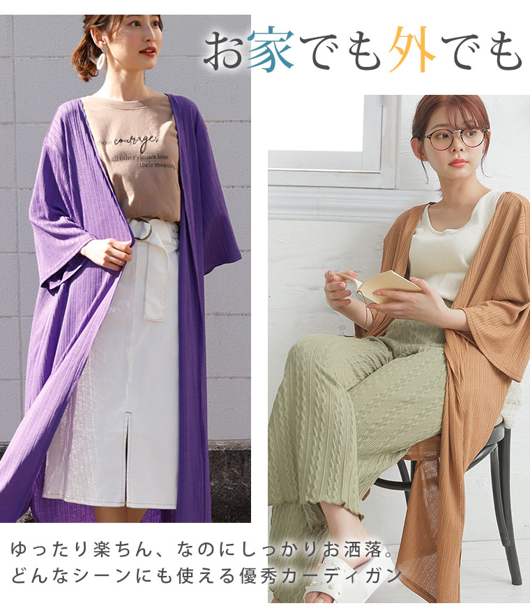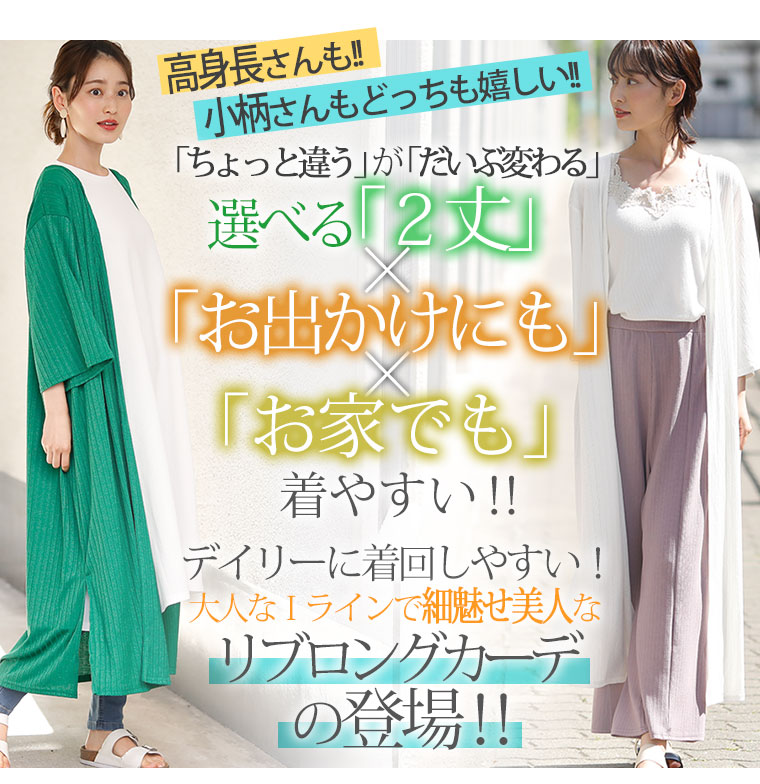 ひらり軽やか 好みに合わせて着丈が選べる、細魅せリブの縦長美人ロングカーディガン
