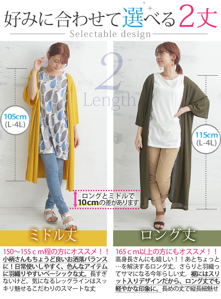 モデル 身長【158cm】 【ミドル丈/L-4L(タグ1)/[左]ロング丈/L-4L(タグ1)サイズ着用】