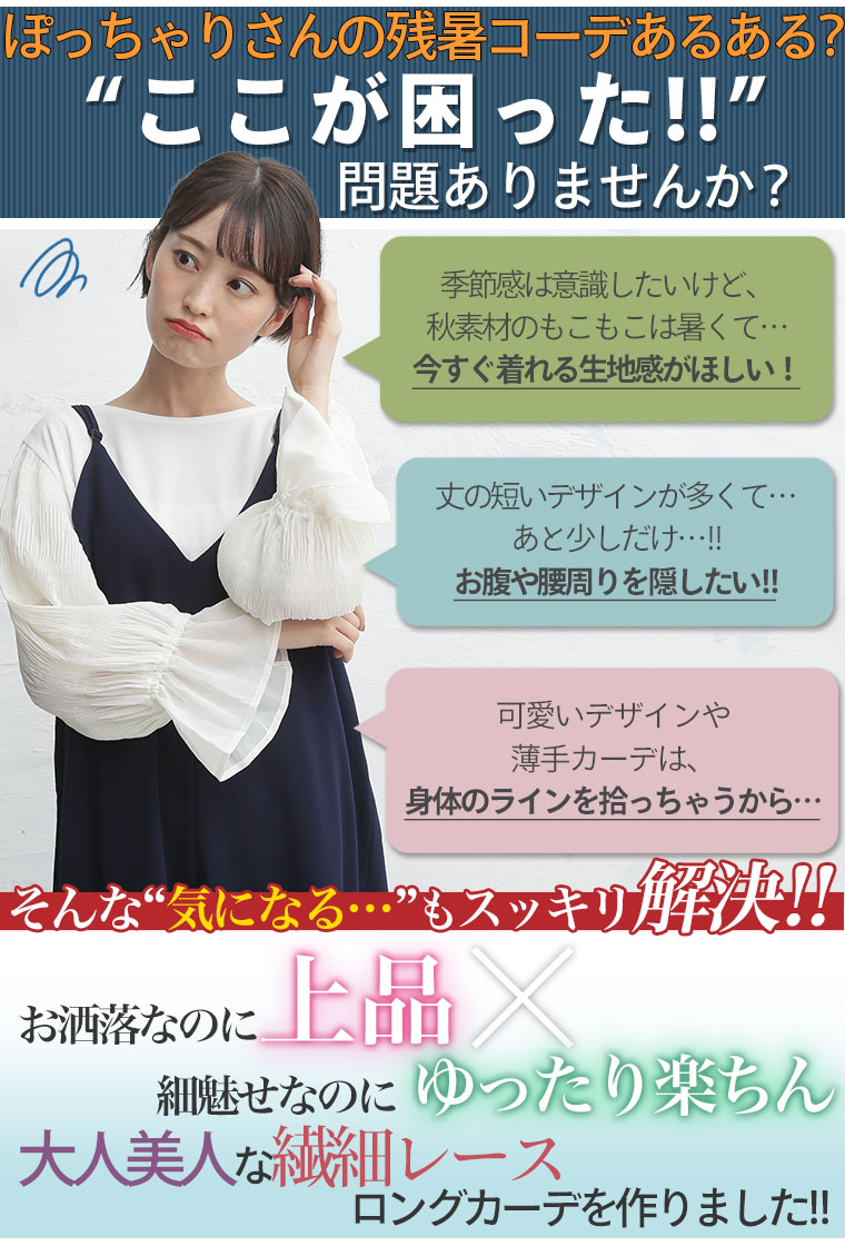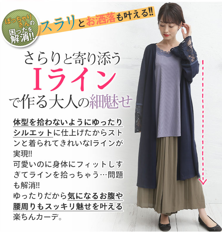 Iラインで下半身まで体型カバーできるロング丈カーデ