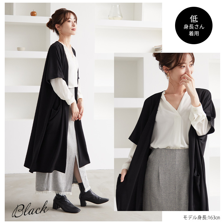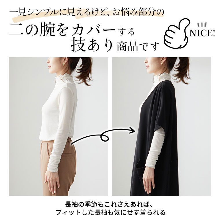 カットグログラン素材二の腕隠しジレ