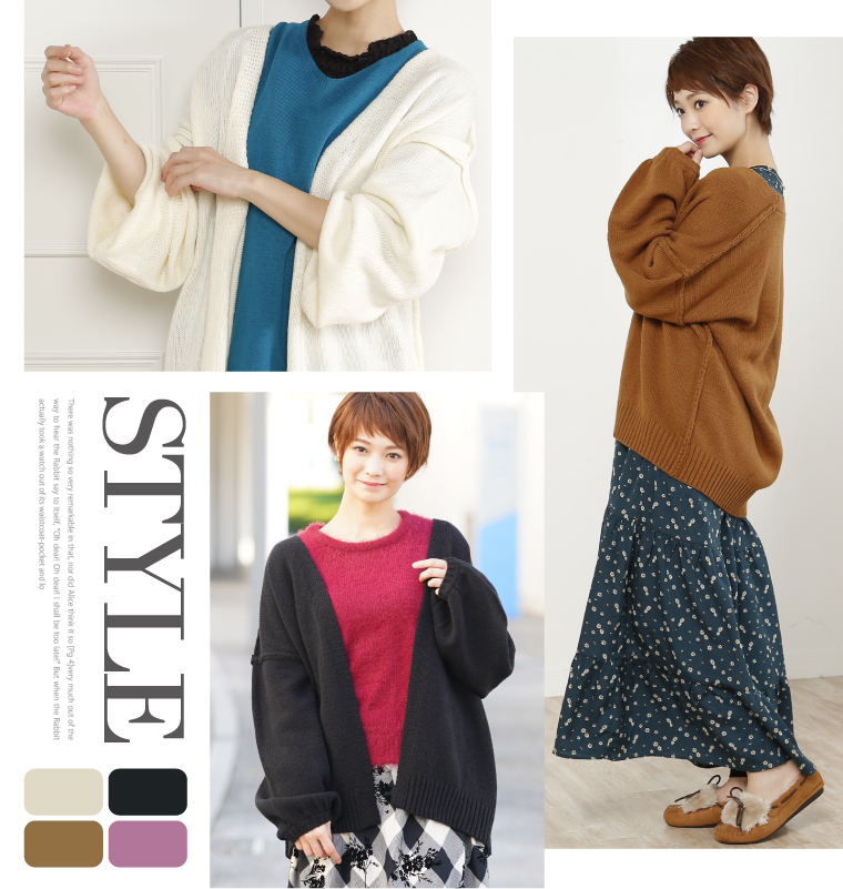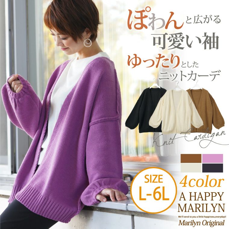 ぽわん袖がアクセントでかわいい!ふんわりニットカーデ