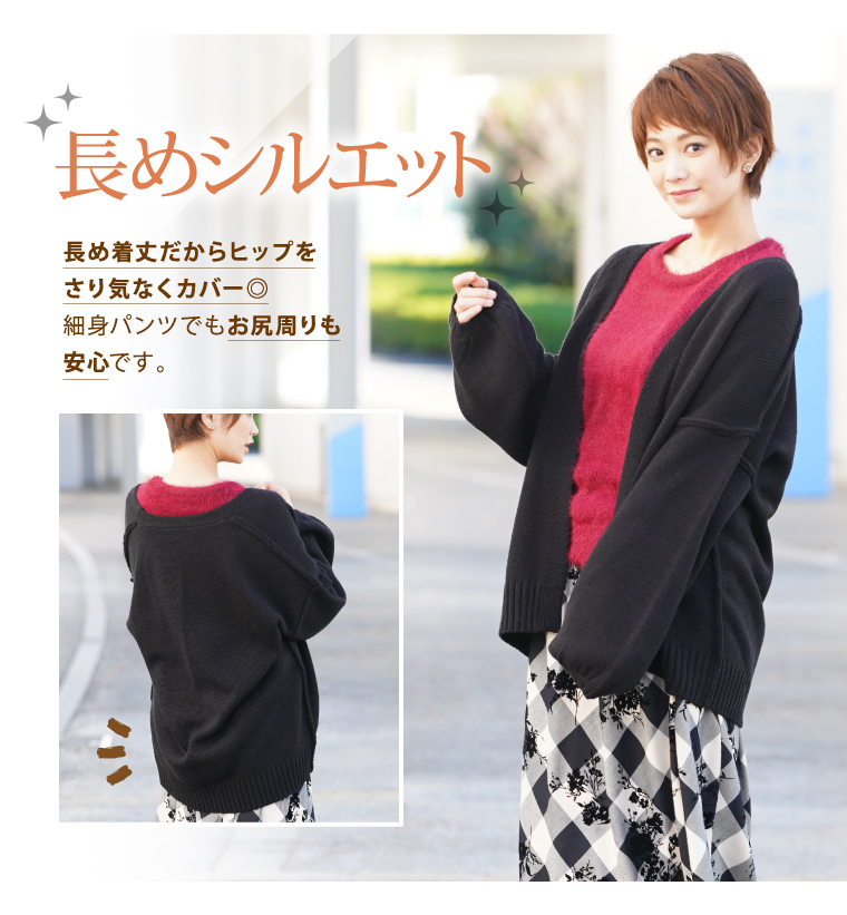 柔らかな生地感でストレスフリー◎ボタン無しでさらっと羽織れるから着やすいのが魅力