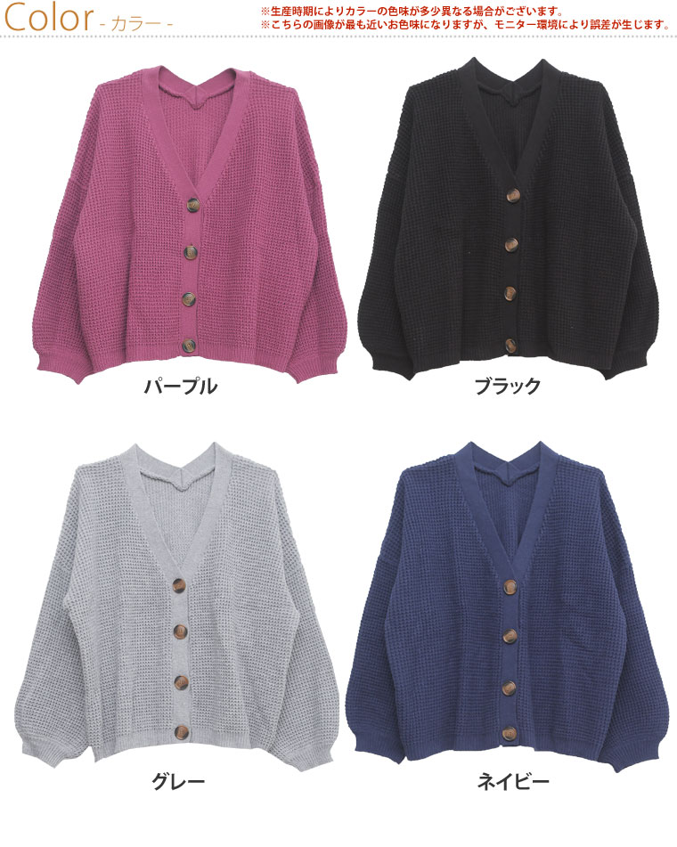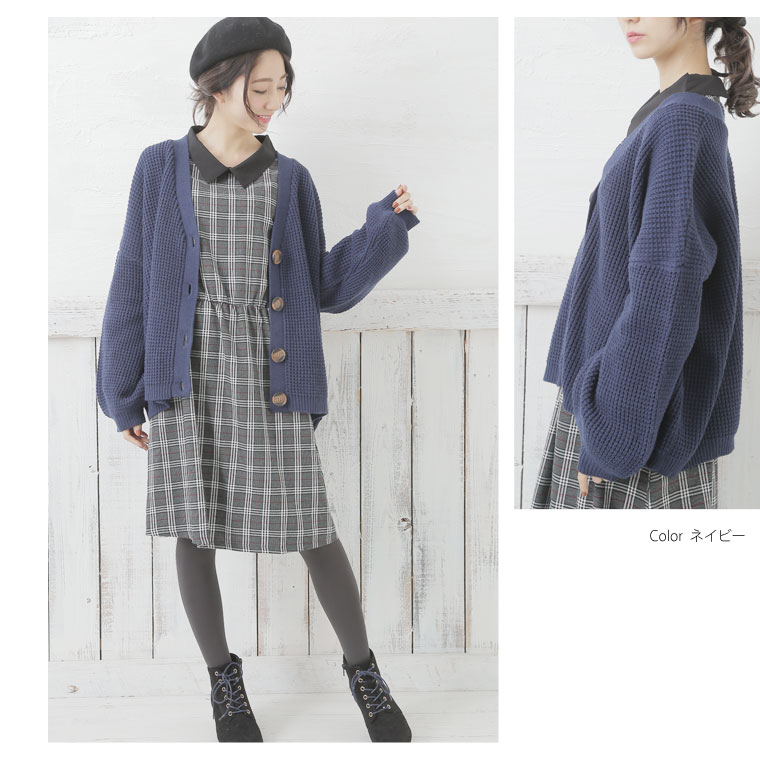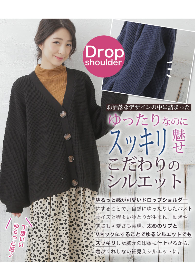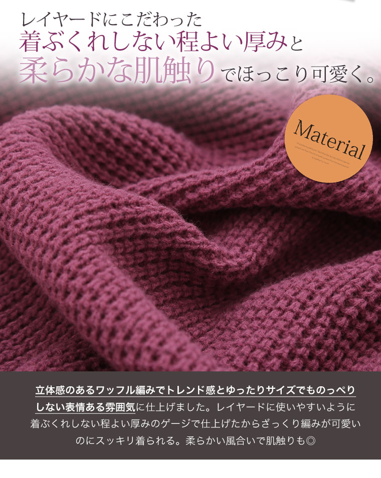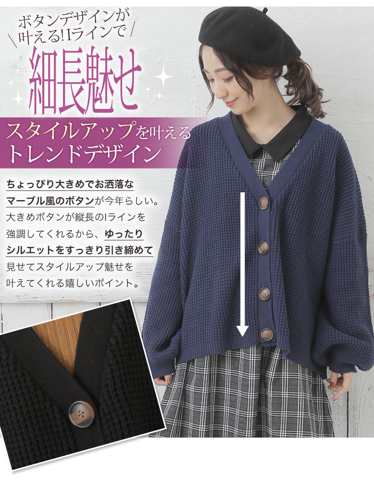 ざっくりとしたワッフル編みが可愛い♪お洒落上手なデザインニットカーデ
