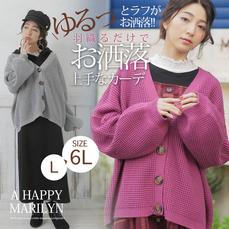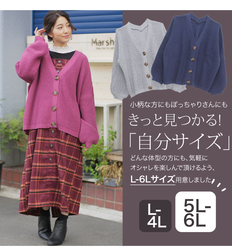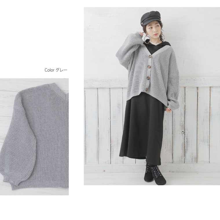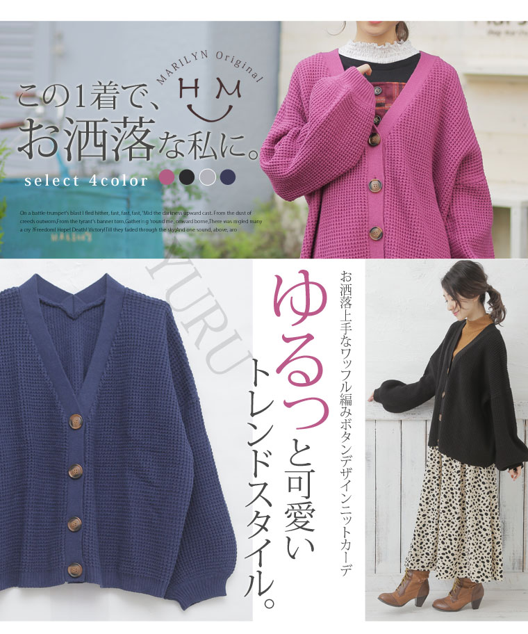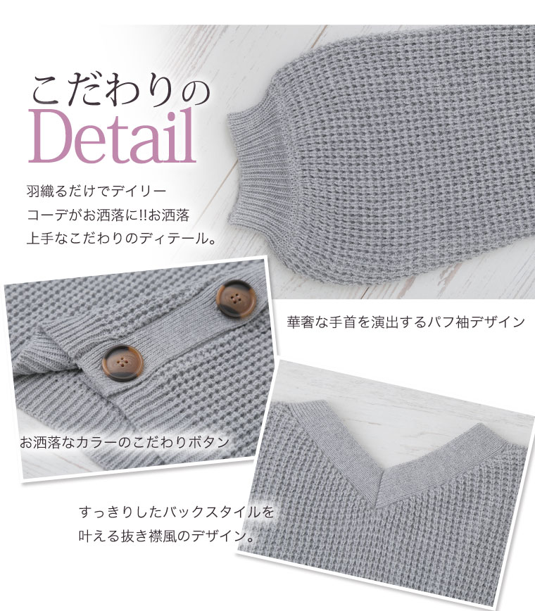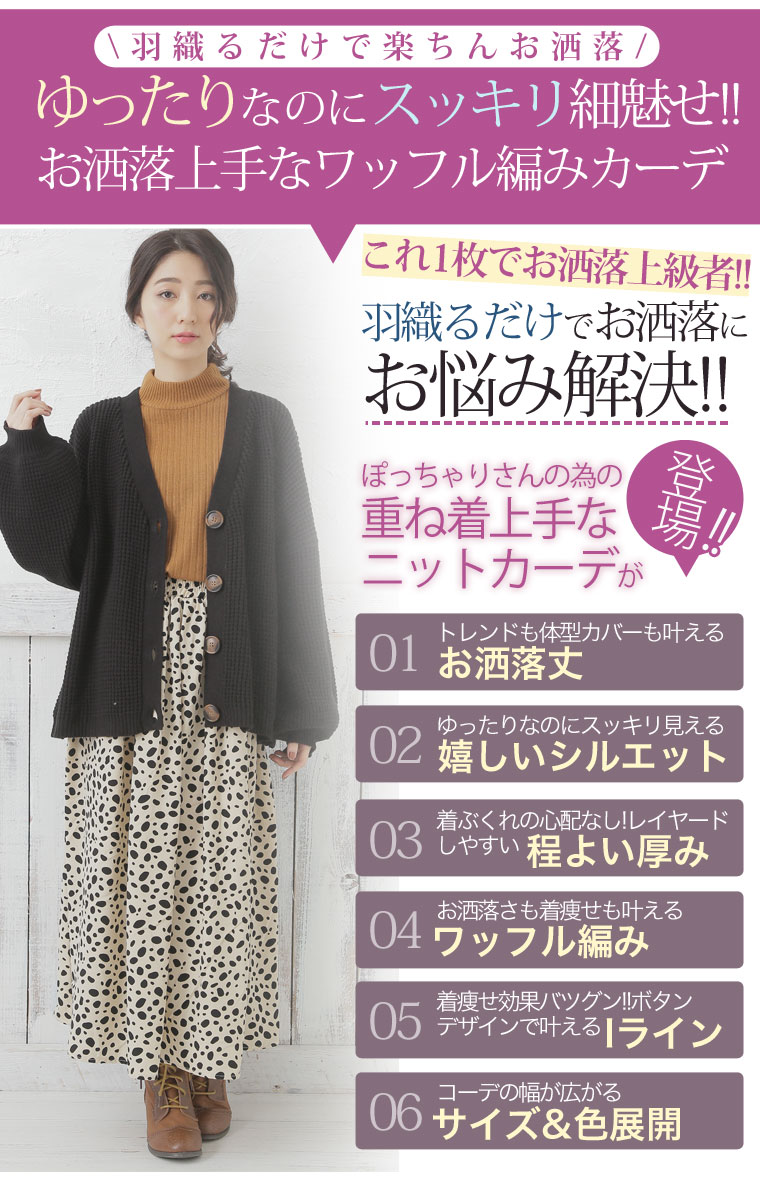 ざっくりとしたワッフル編みが可愛い♪お洒落上手なデザインニットカーデ