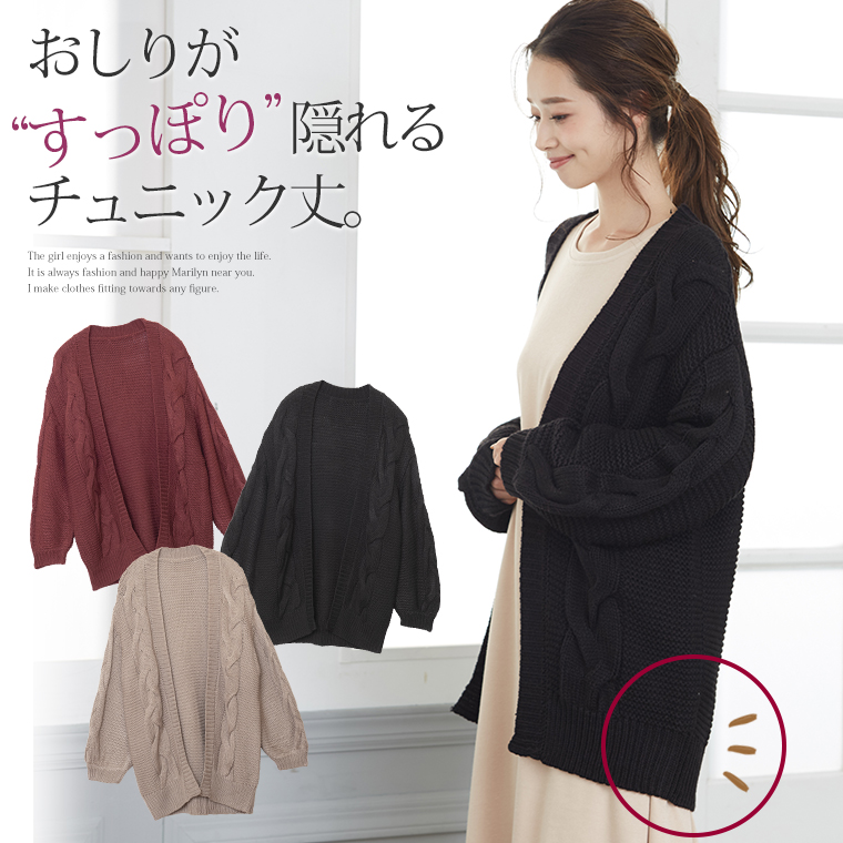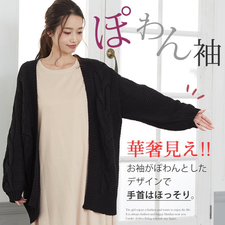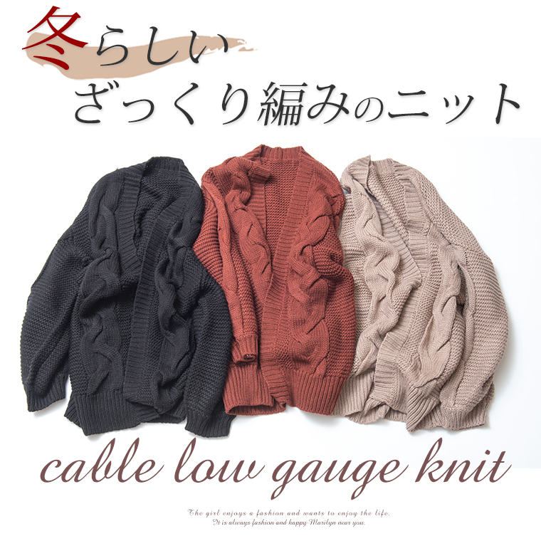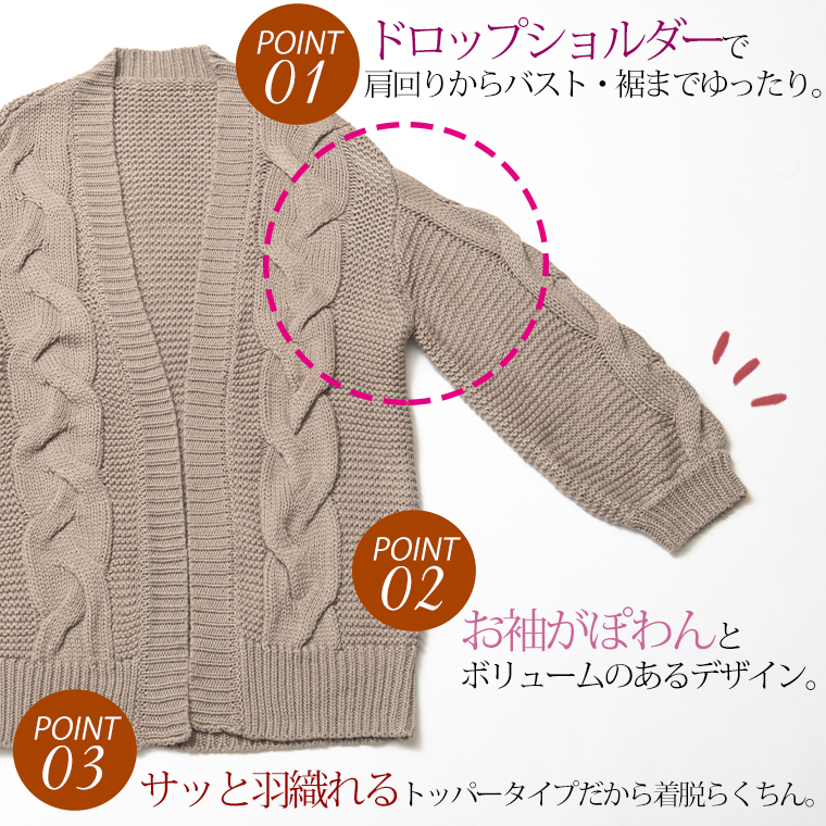 羽織るだけでトレンドコーデなざっくり編みケーブル柄ニットカーディガン