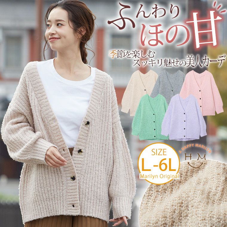 オリジナル アウター カーディガン カーデガン LL 3L 4L 5L 6L 秋 秋物 秋服 冬 冬物 冬服 ゆったり お腹 胸周り 二の腕カバー もこもこ タム ふんわり ニット リブ編み 長袖 ショート カーデ | 大きいサイズの通販ならハッピーマリリン