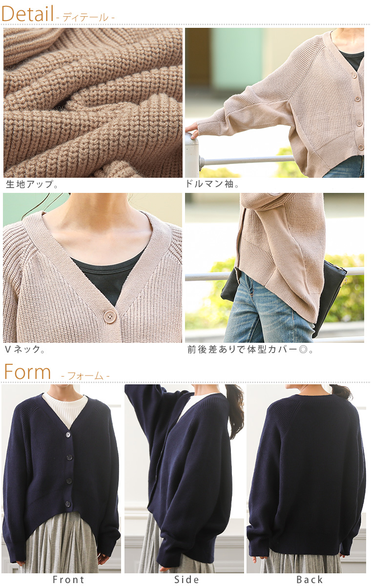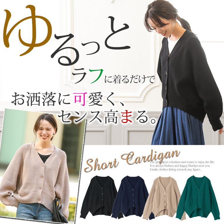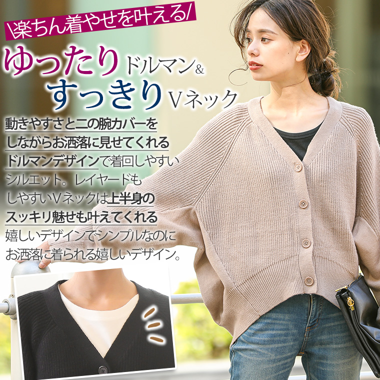 弾力のあるもちもち感!肌触り抜群のドルマン袖が可愛い♪体型カバーのコクーンショートカーデ