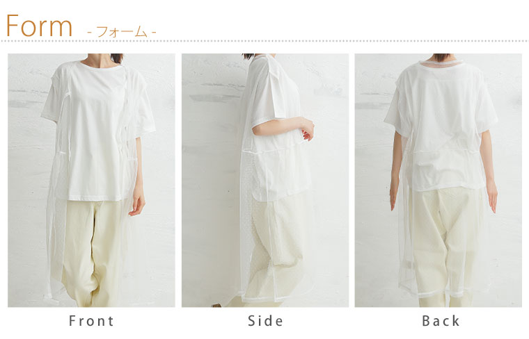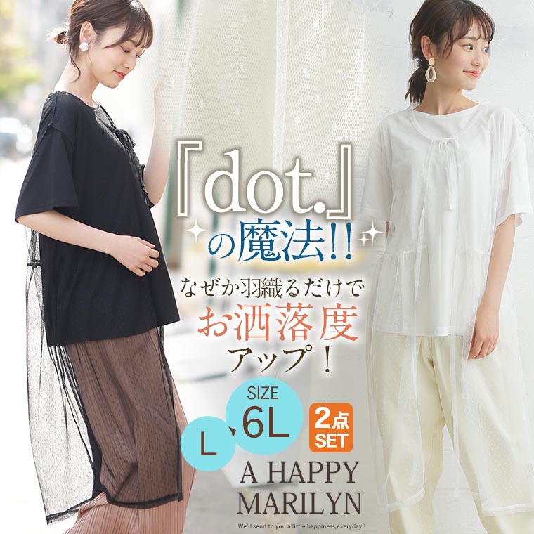 大きいサイズ ドットチュール トッパー × Tシャツ アンサンブル