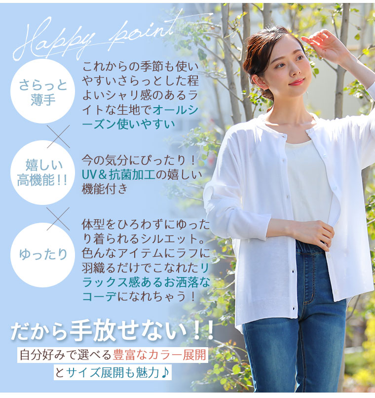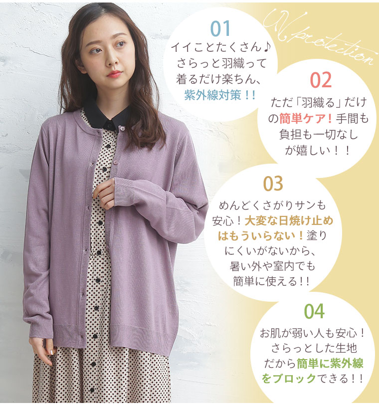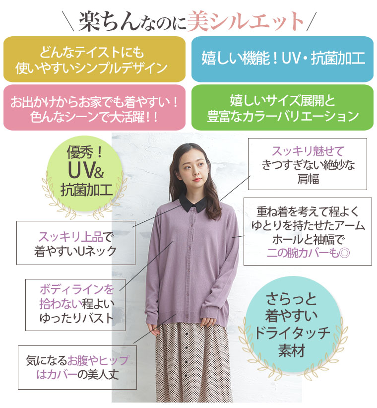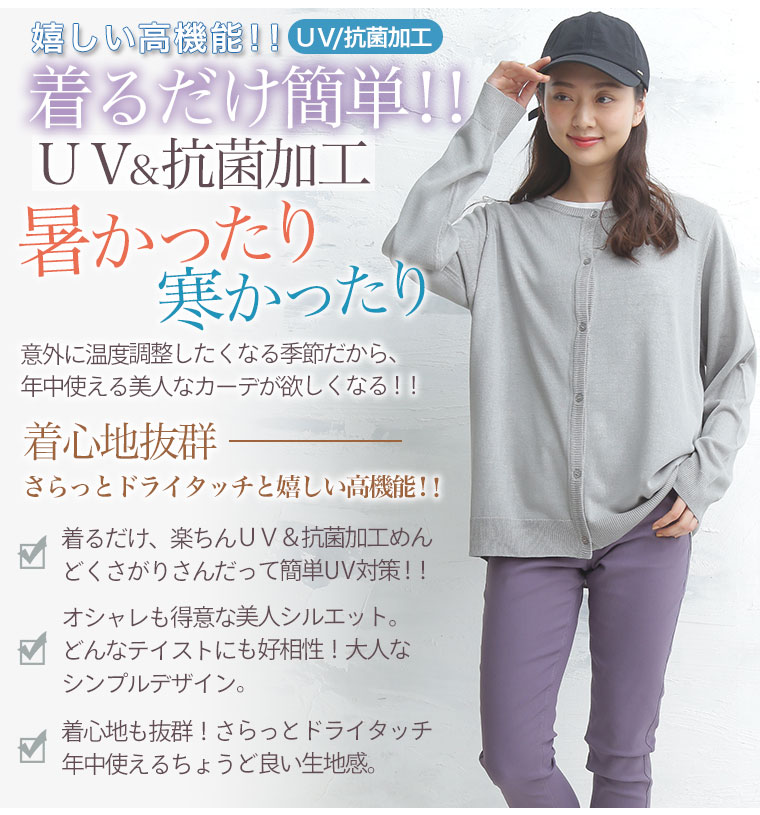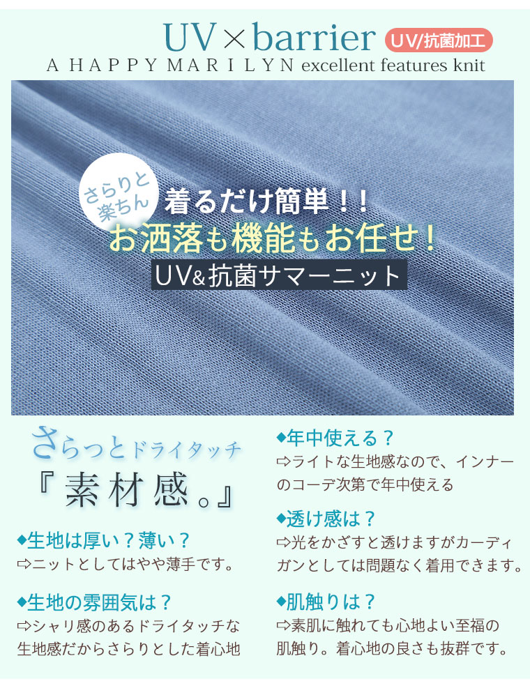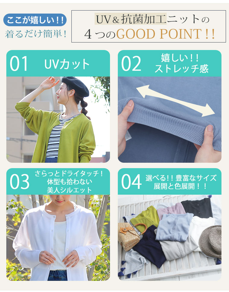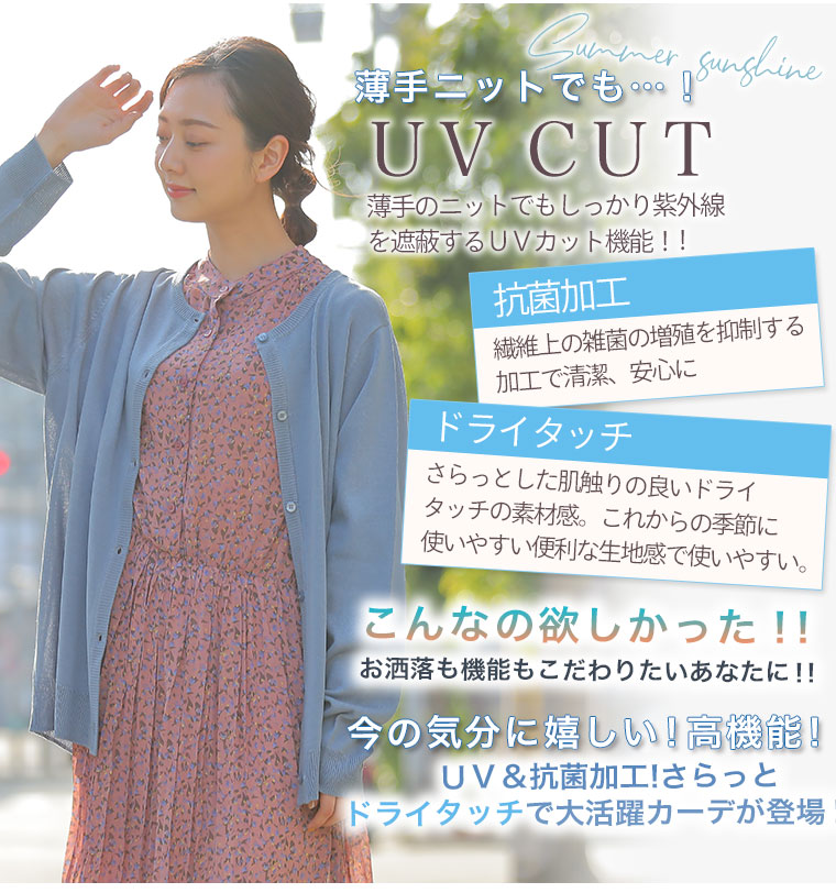 さらっとドライタッチ!嬉しいUV&抗菌機能!華奢魅せシンプルニットカーデ