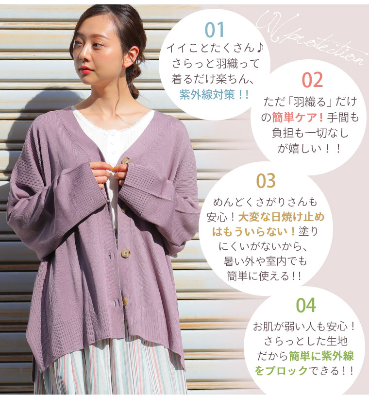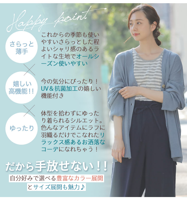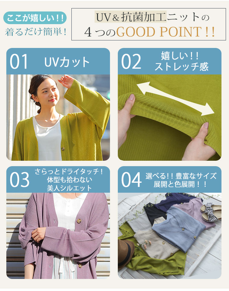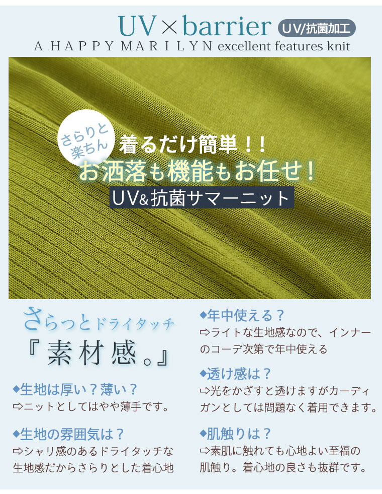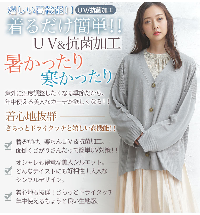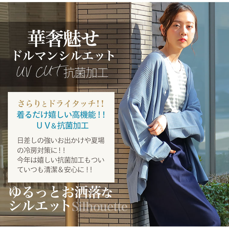 さらっとドライタッチ!嬉しいUV&抗菌機能!華奢魅せドルマンサマーニットカーデ