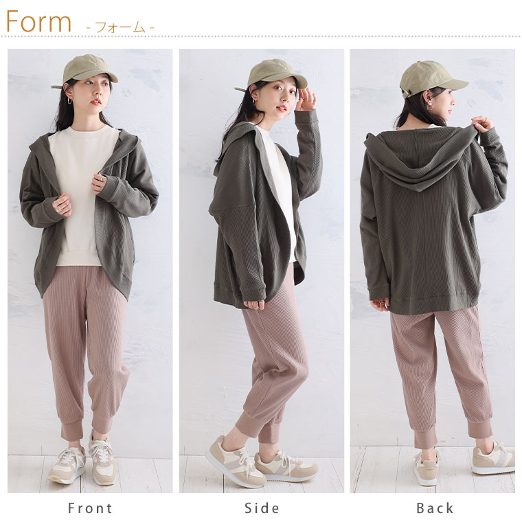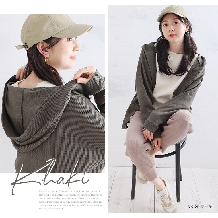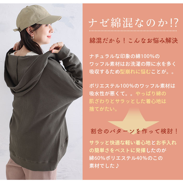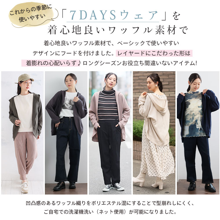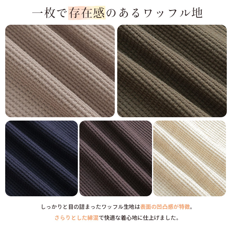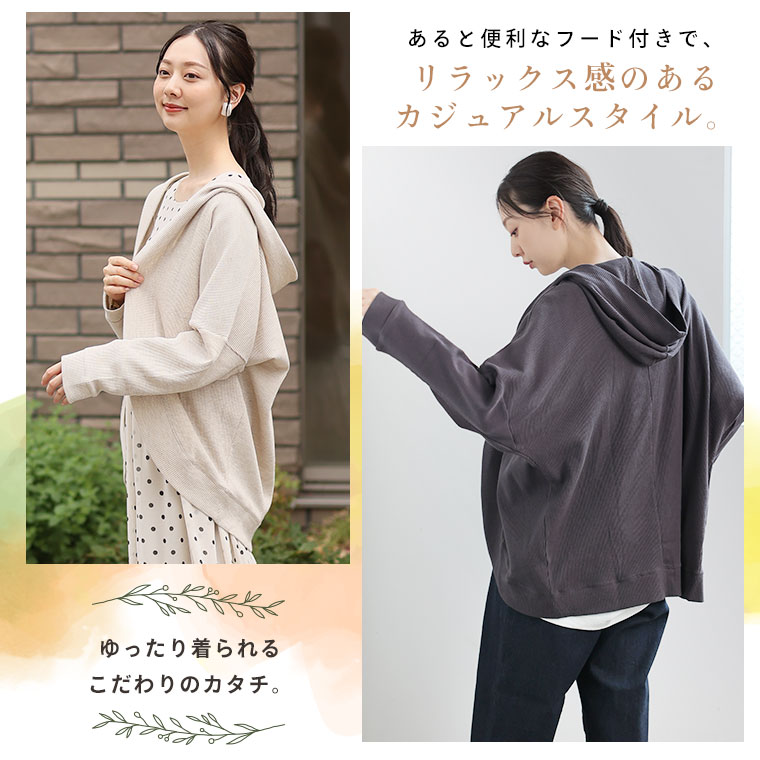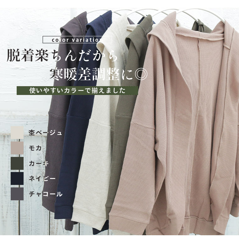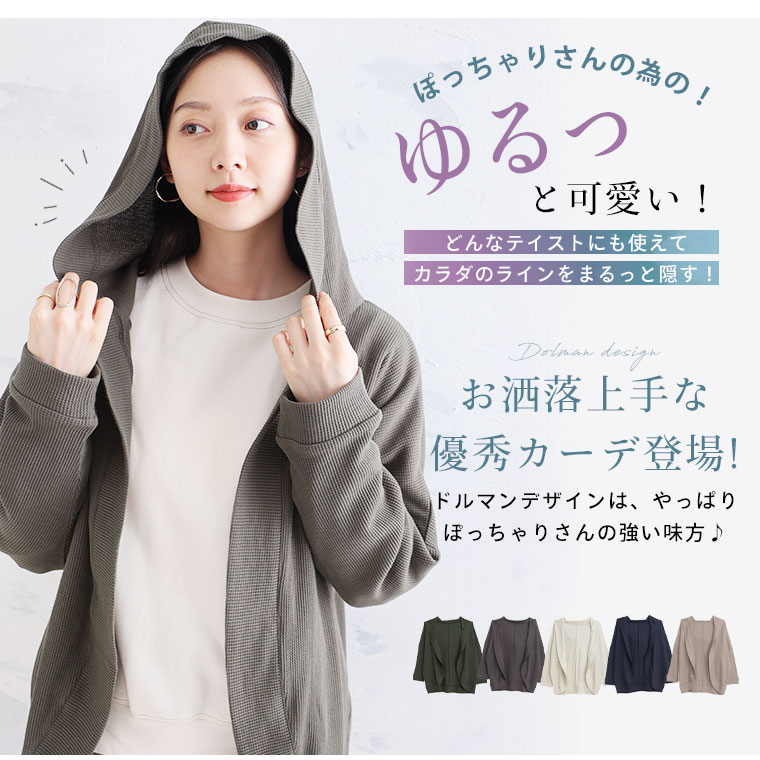 ゆったり着られる 綿混ワッフル素材カーディガン