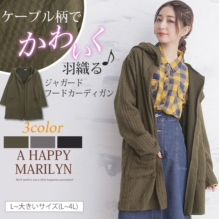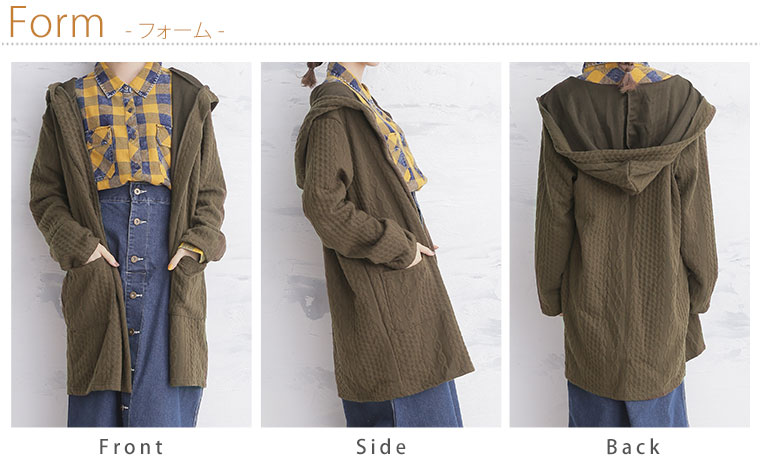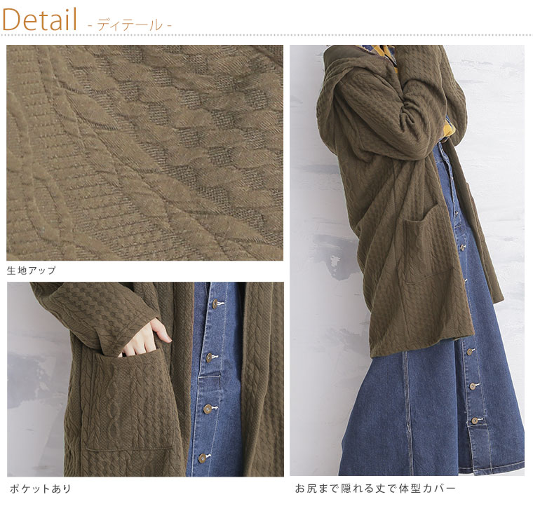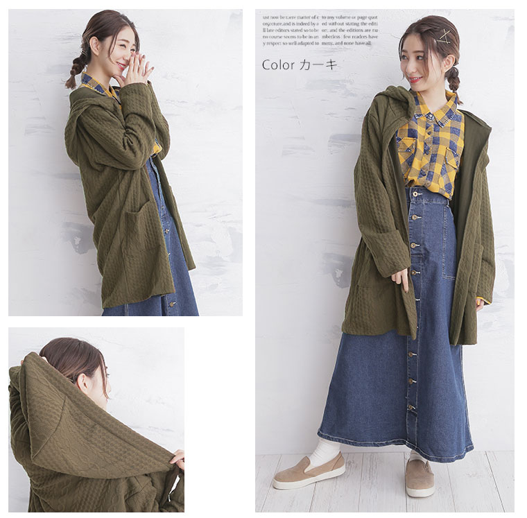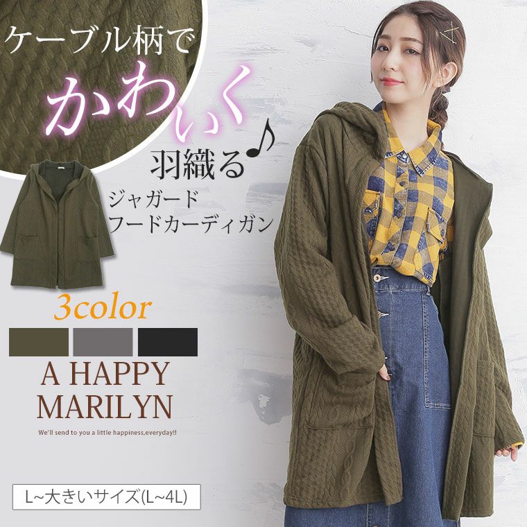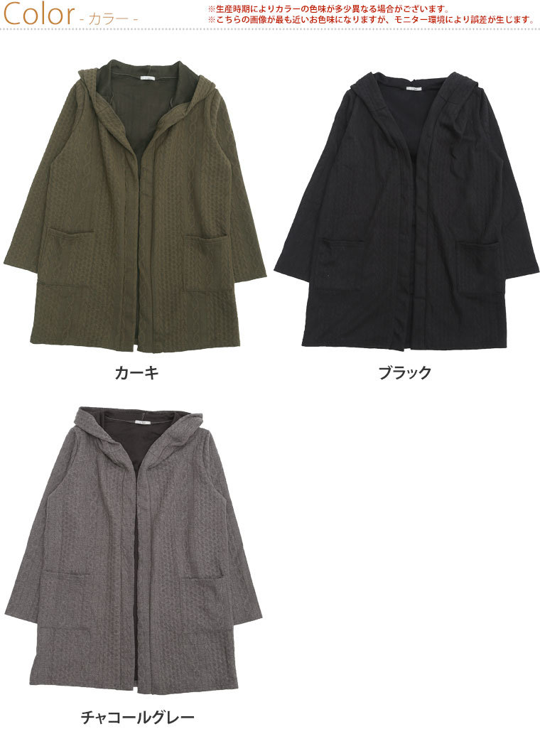 ケーブル柄がナチュラルな雰囲気のジャガードフード長袖カーディガン