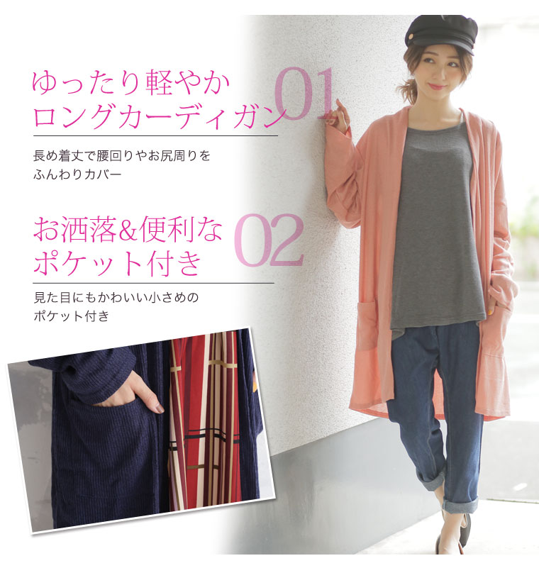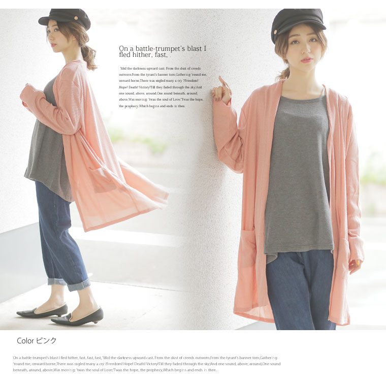 ロング丈でスッキリ着痩せ!!ポケット付きで機能面でも便利な1枚