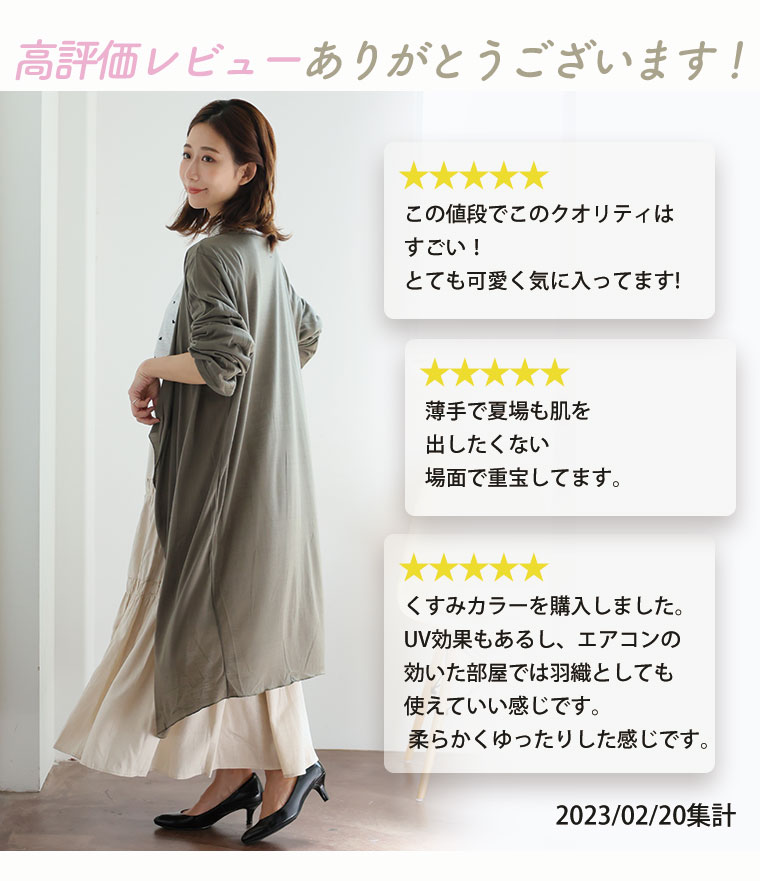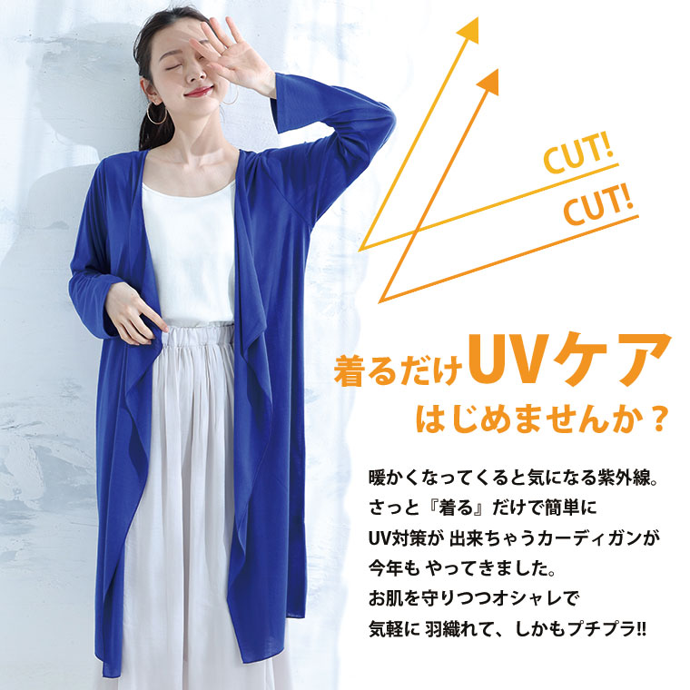新色追加!! ヒラリと動きのあるシルエットでスッキリ着痩せ。UV加工トッパーカーデ