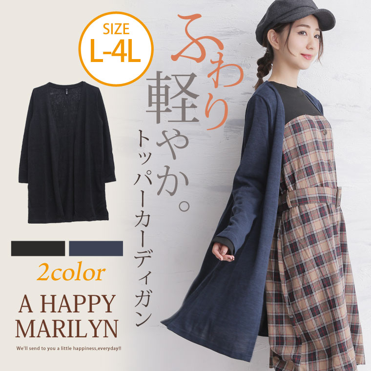 アウター カーデガン カーデ LL 3L 4L 秋 秋物 秋服 冬 冬物 冬服 ぽっちゃり かわいい おしゃれ カジュアル 可愛い 大人 ビッグサイズ ニットソー 脇スリット 長袖 トッパーカーディガン