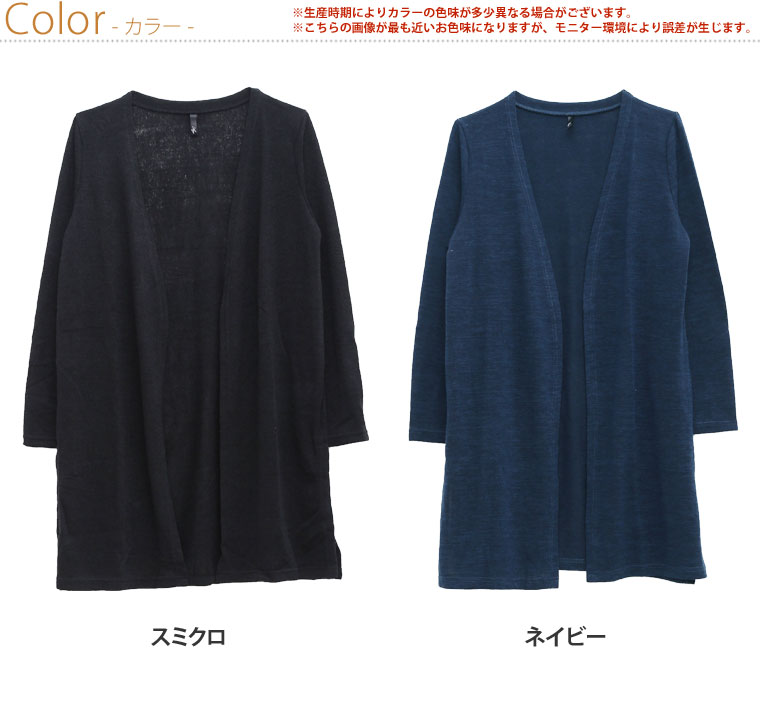 大きいサイズ ニットソー 脇スリット 長袖 トッパーカーディガン