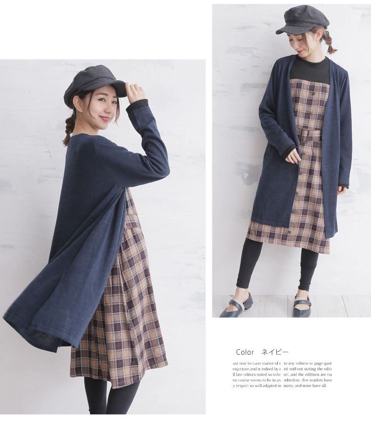 丈は膝上10cm、サイドスリットは腰骨下12cm、袖は手首のグリグリ(尺骨茎状突起)下4cmです。ゆったりと着用できました。