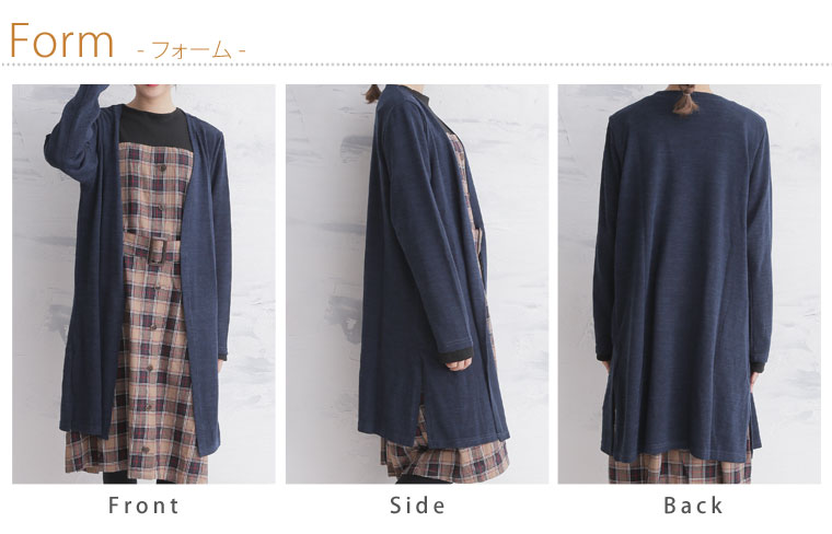 3. 大きいサイズ ニットソー 脇スリット 長袖 トッパーカーディガン