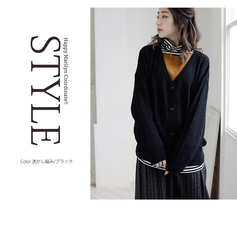 透かし編みがレトロで可愛い♪Vネックカーディガン