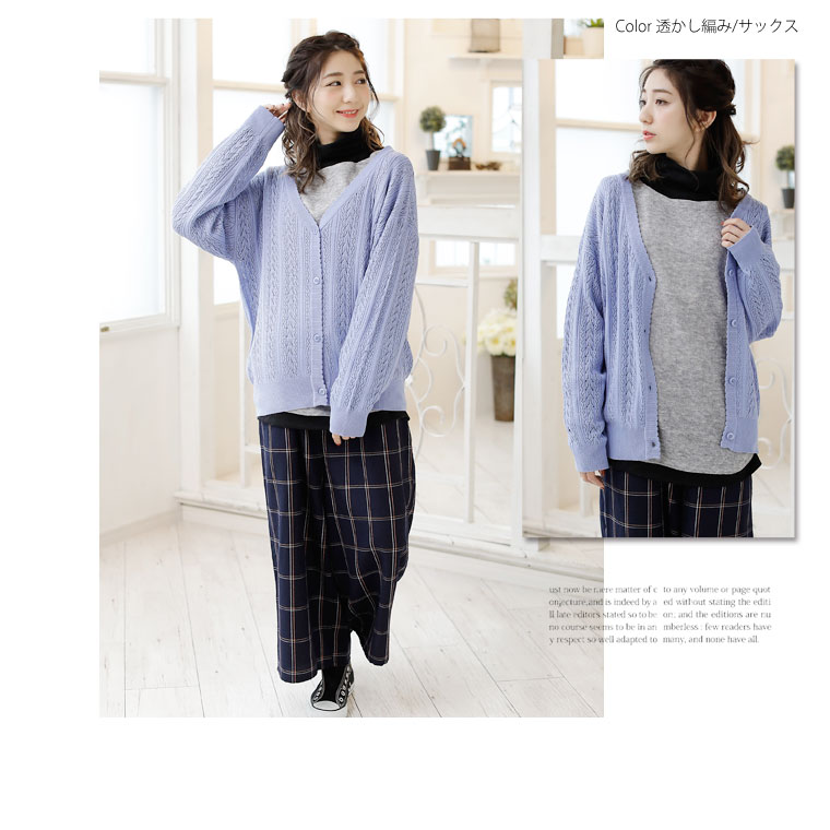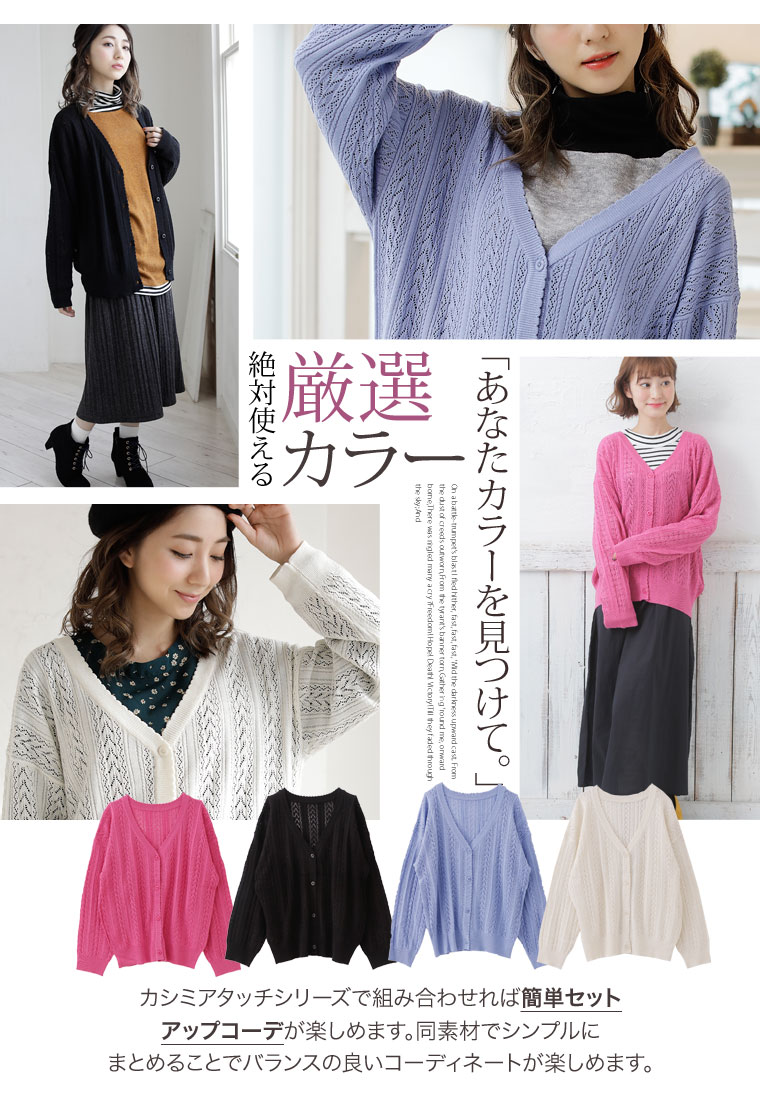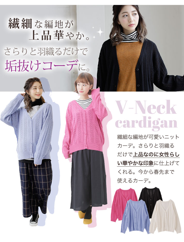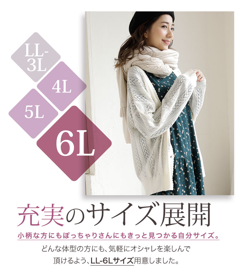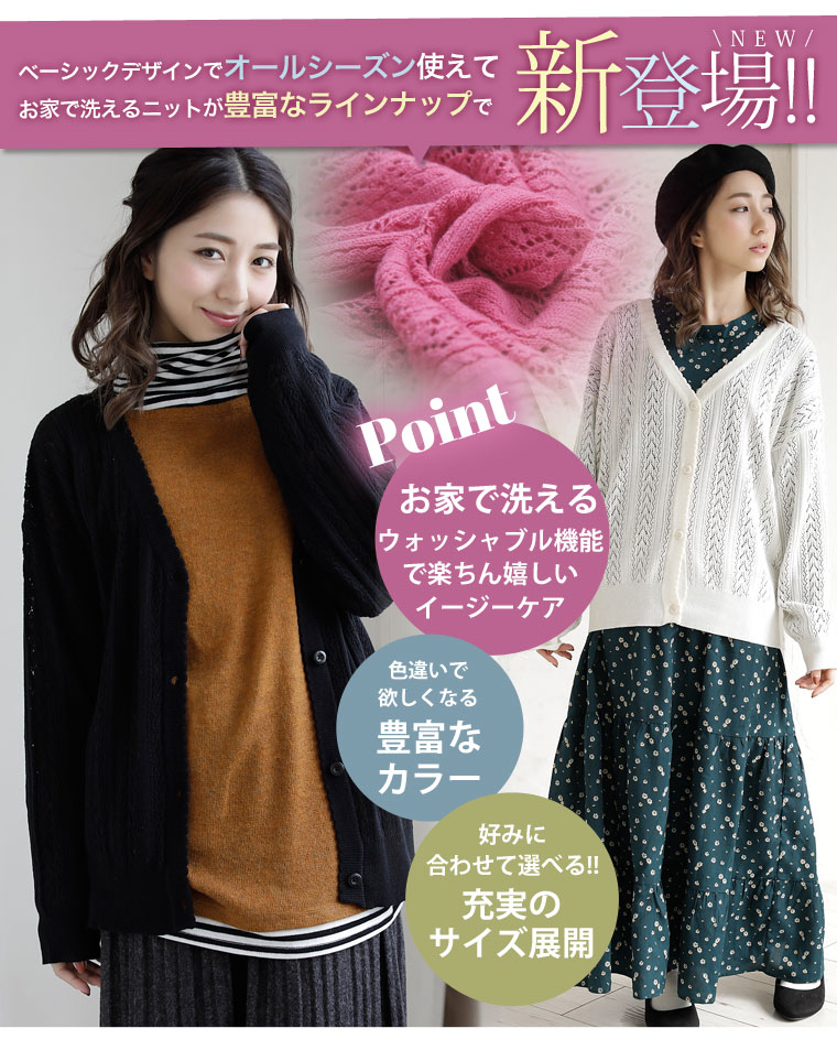 アウター カーデガン カーデ LL 3L 4L 5L 6L 冬 冬物 冬服 ぽっちゃり かわいい おしゃれ ウォッシャブル 洗えるニット コットン タッチ ニット 透かし編み 綿混 Vネック 長袖 カーディガン