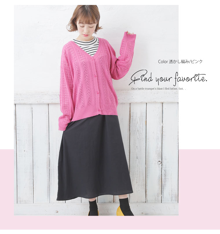 とても可愛いピンクで気持ちがあがります! サイズ感はちょうど良いです。 編み目が大きいので、中に着るのも考えなきゃ…ですね。 でも、可愛いです!