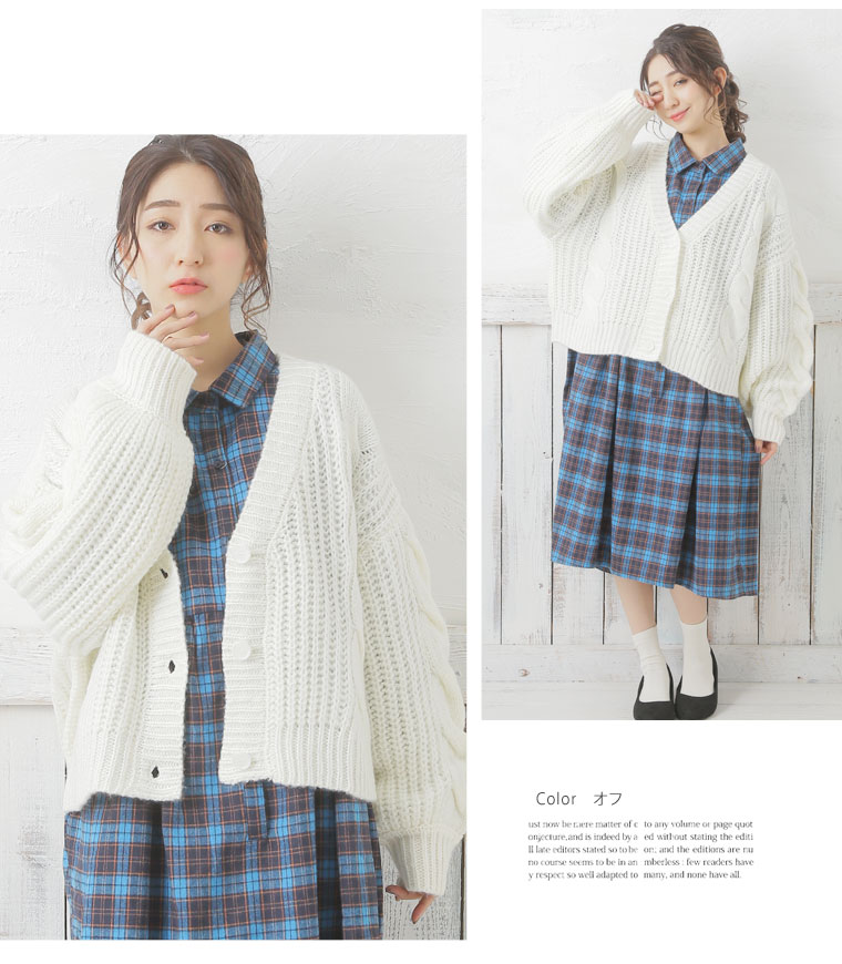 5. 大きいサイズ ケーブルニット Vネック 長袖 カーディガン