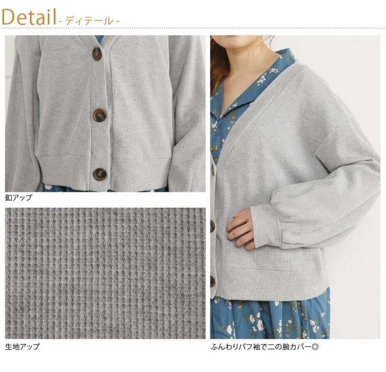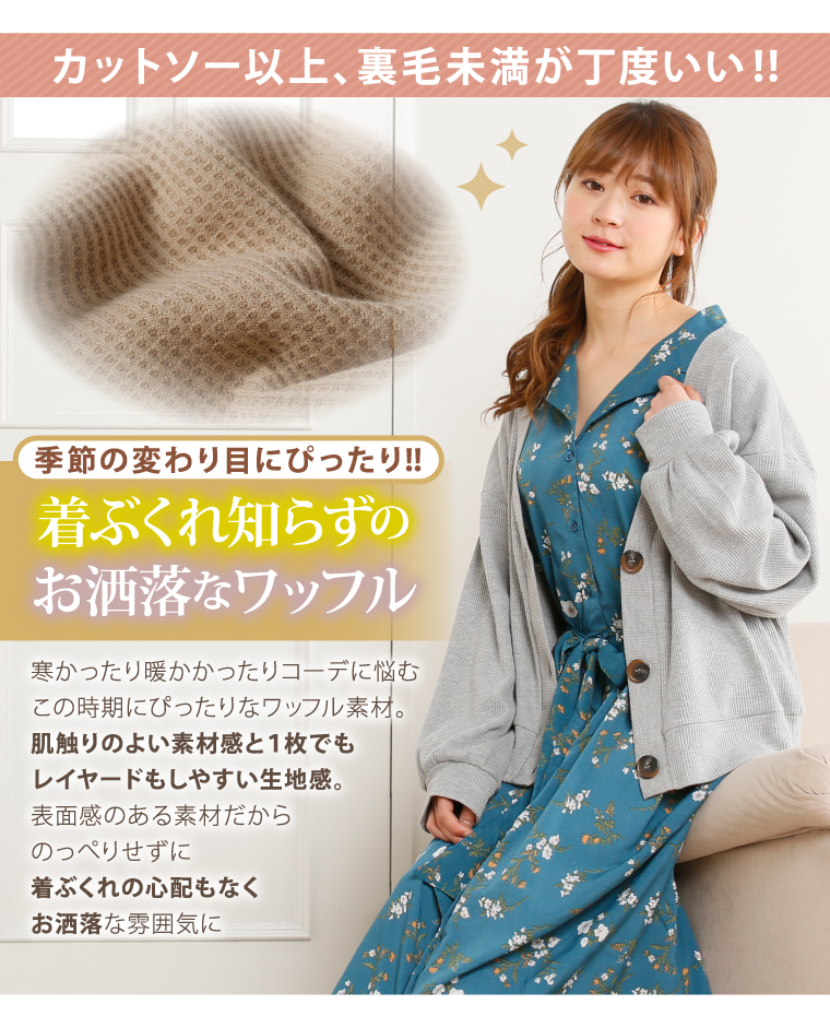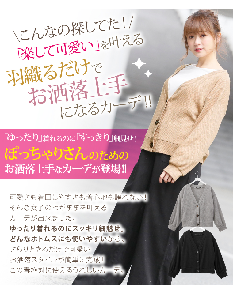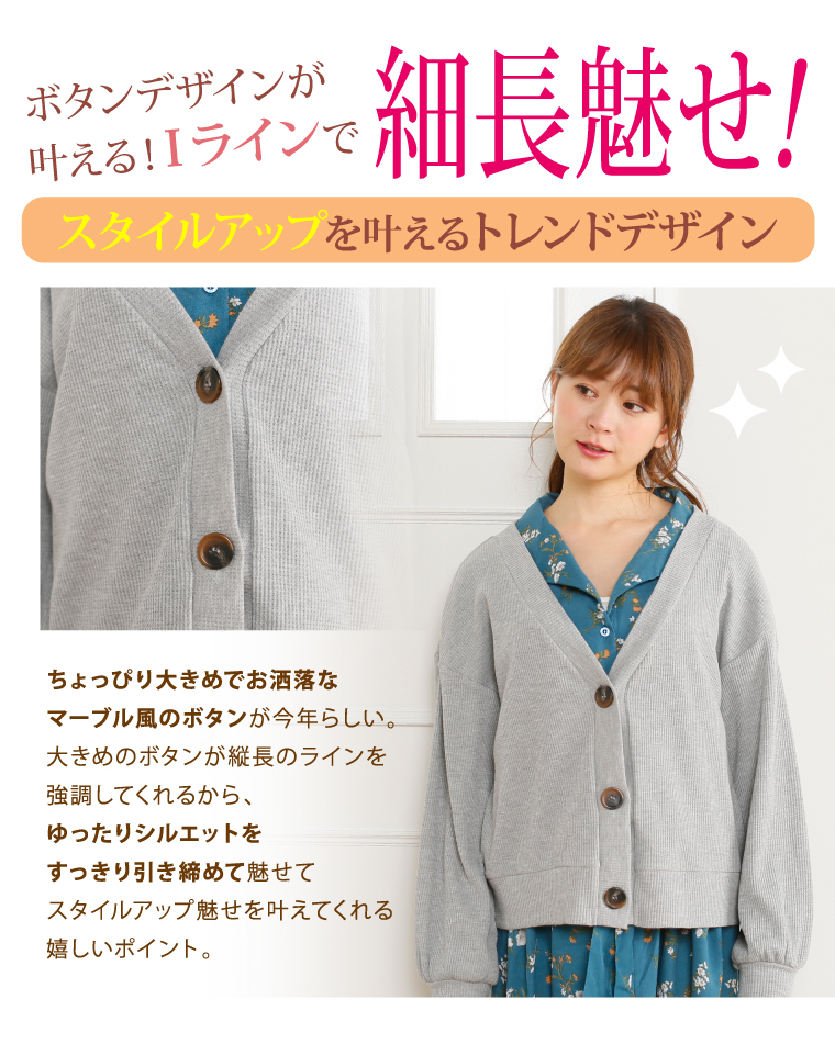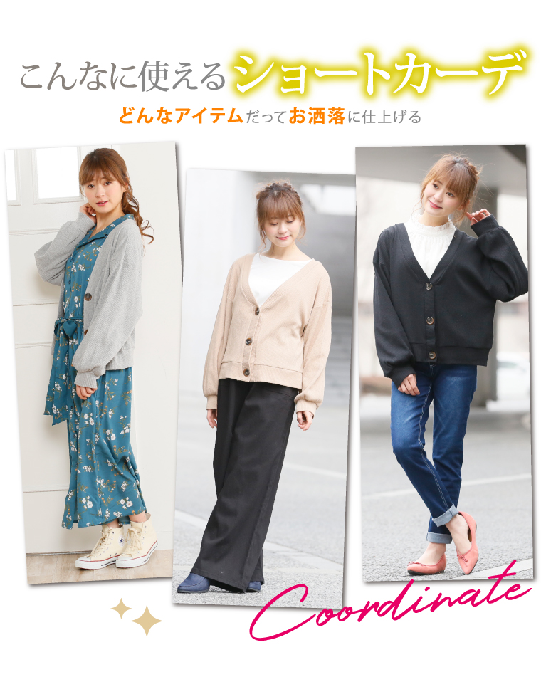 ショート丈で何にでも合わせやすい!ワッフルVネックショートカーディガン