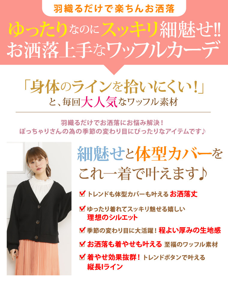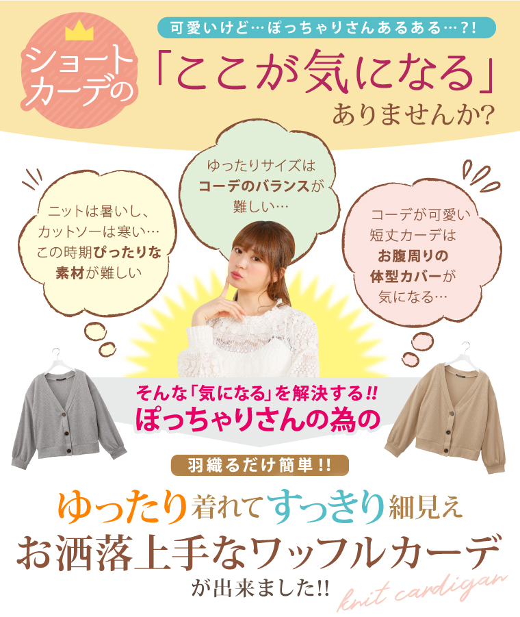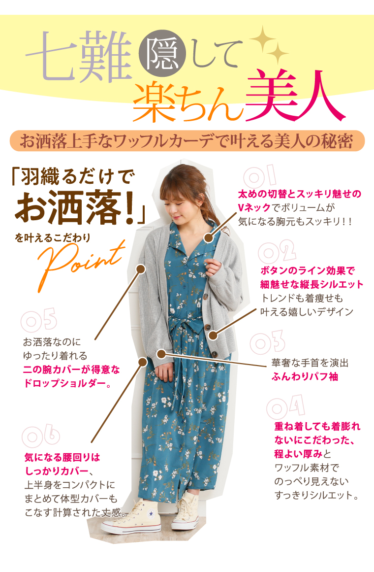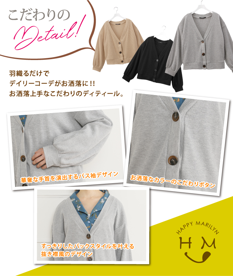 ショート丈で何にでも合わせやすい!ワッフルVネックショートカーディガン