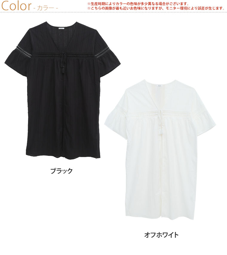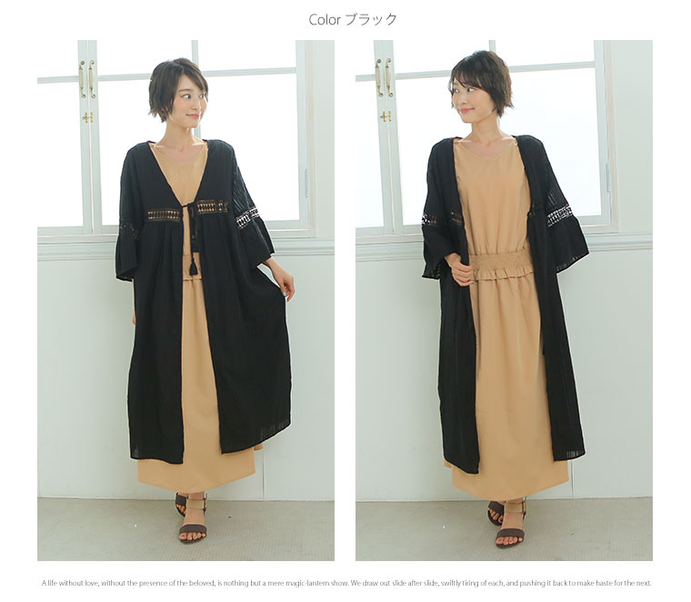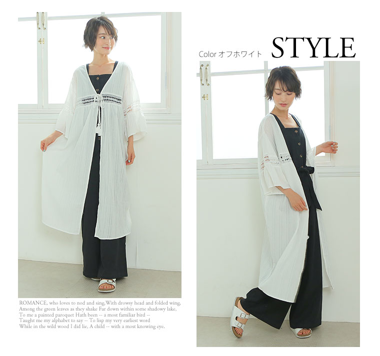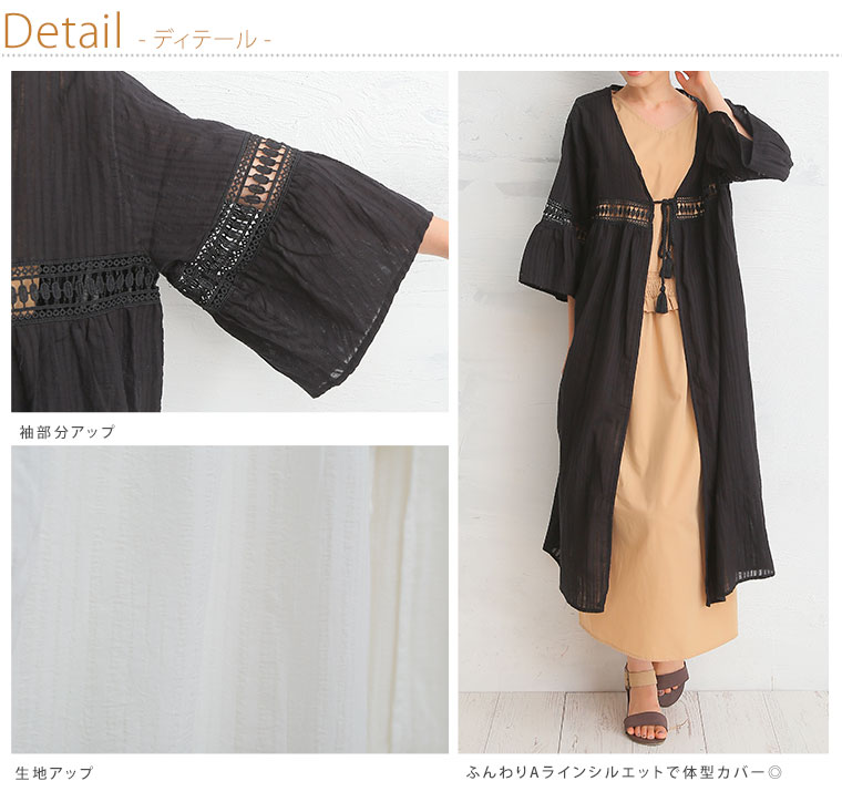 透け感のあるレースが魅力的な、ドビーストライプトーションレースカーデ