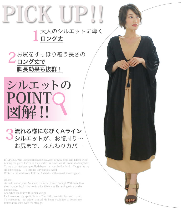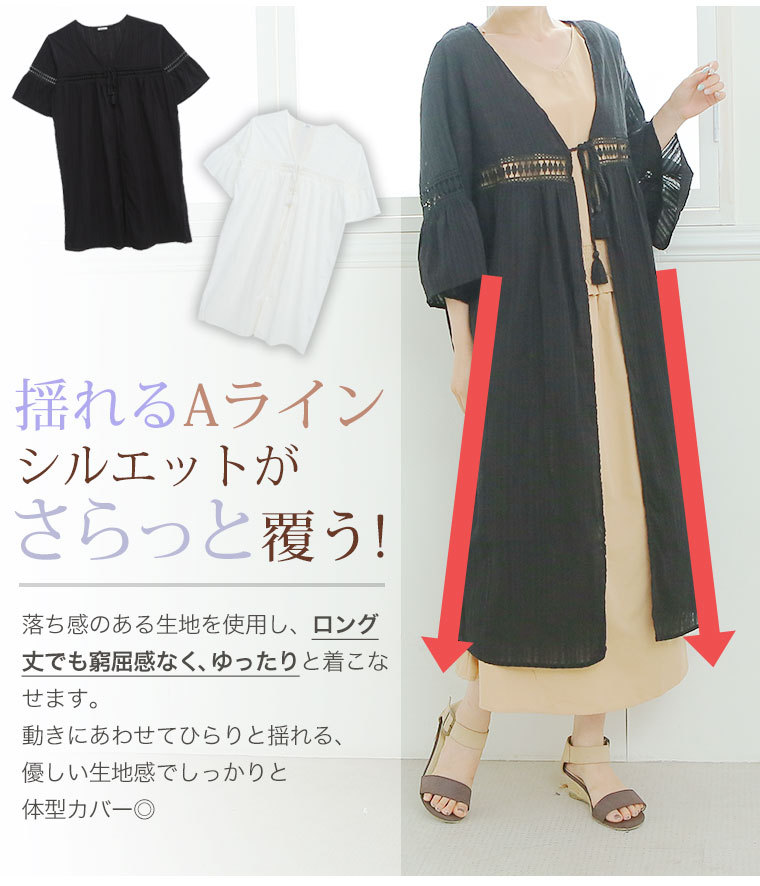 ロング丈でゆったりと窮屈感なく体型をカバーしてくれます。