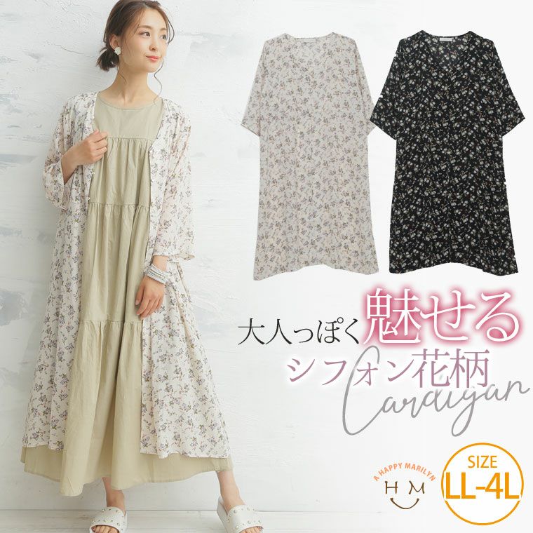 軽やかなシフォン素材で柔らかい印象に♪花柄カーディガン