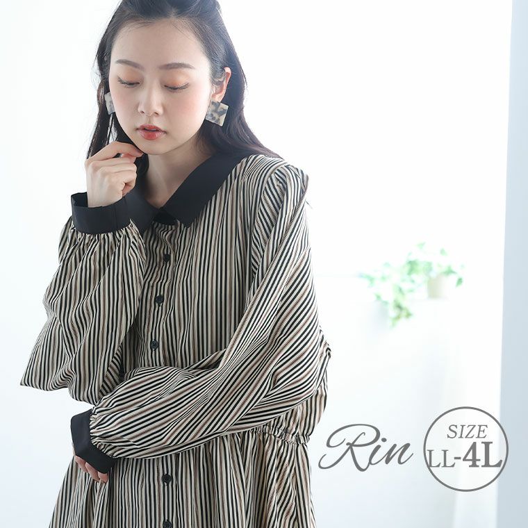 【Rin】マルチストライプ柄プリントワンピース