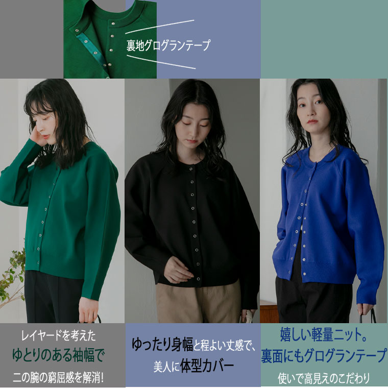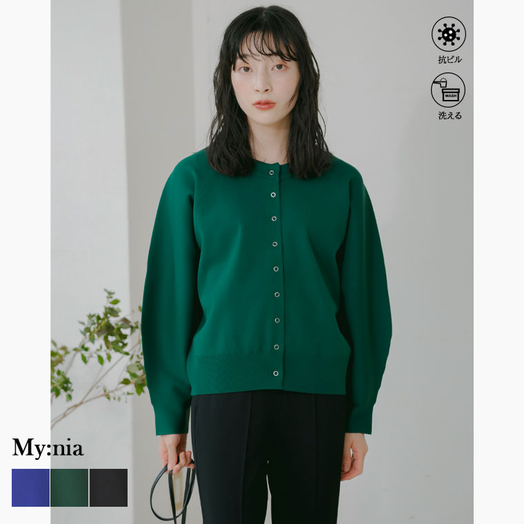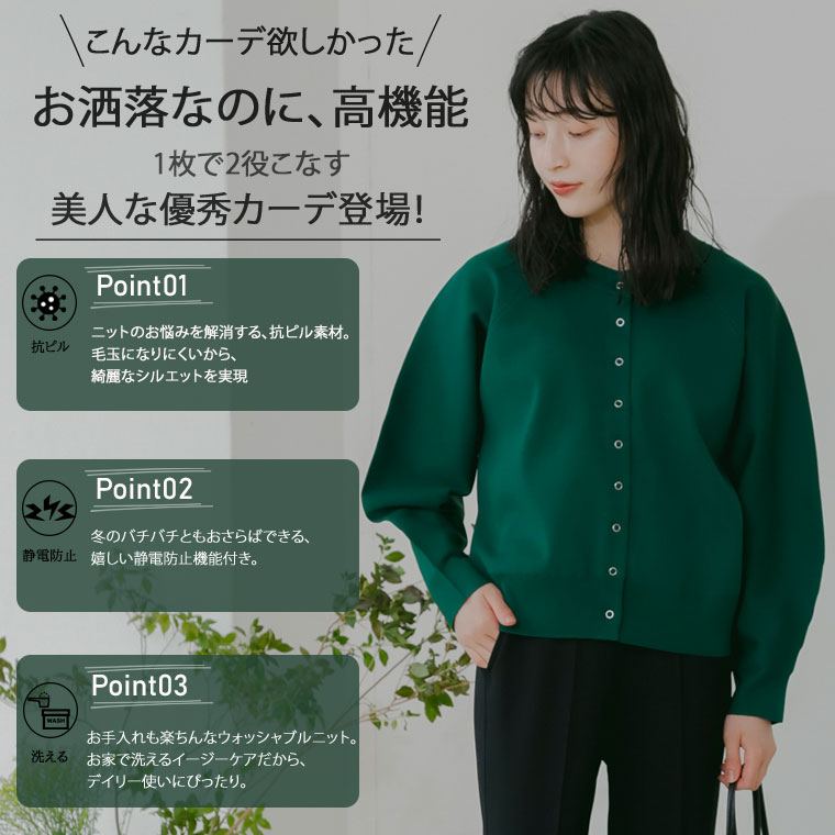 大きいサイズ 【LUMFORLE produced by My:nia】静電防止 抗ピル ウォッシャブル 12G総針 ドットボタン カーデ 洗える 毛玉にならない