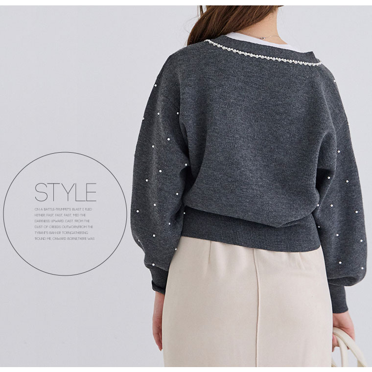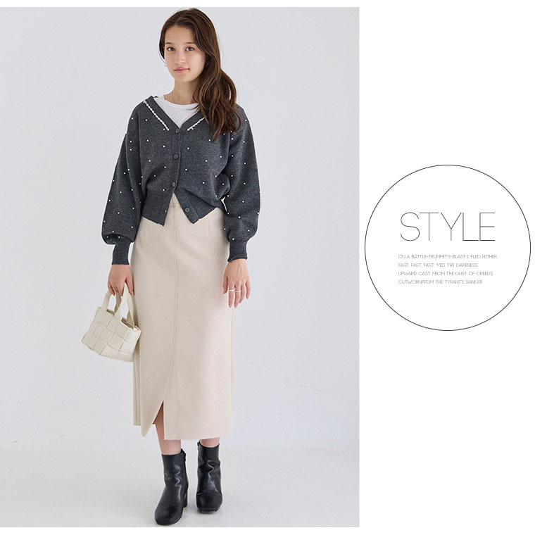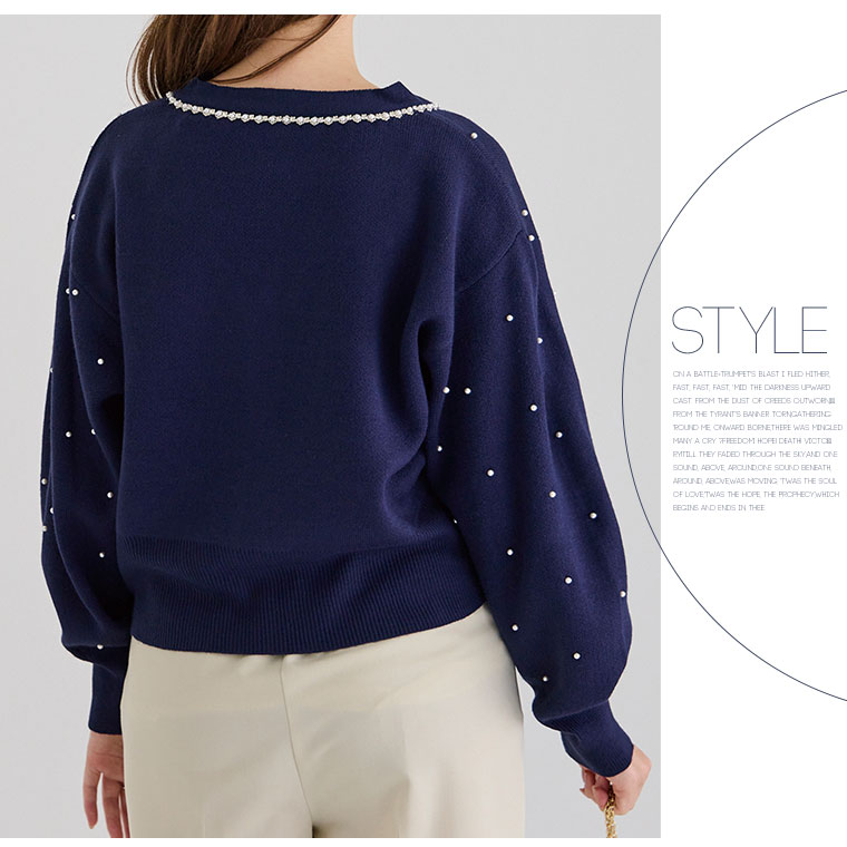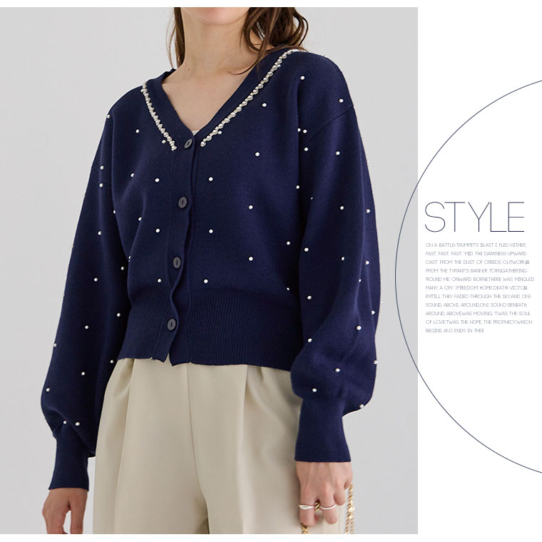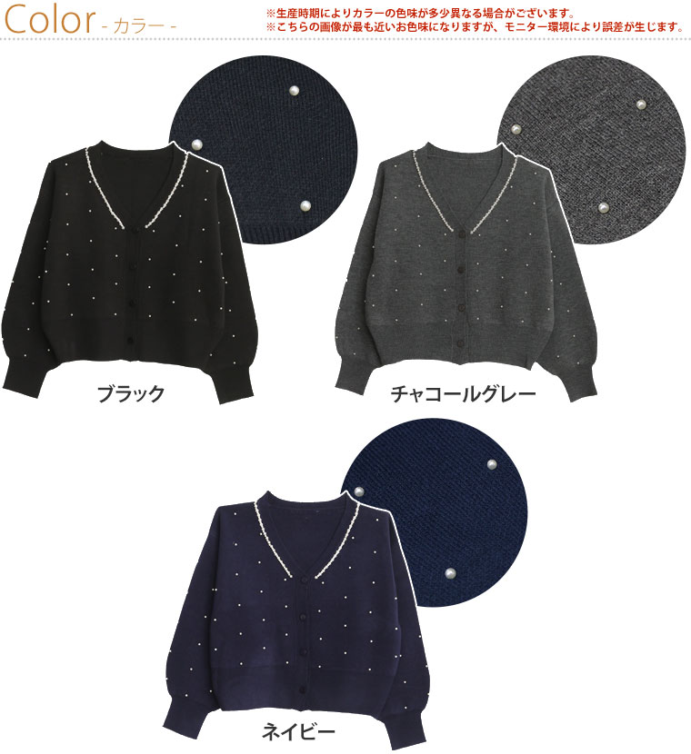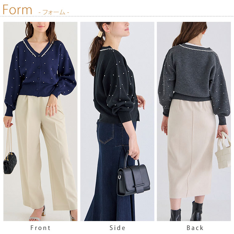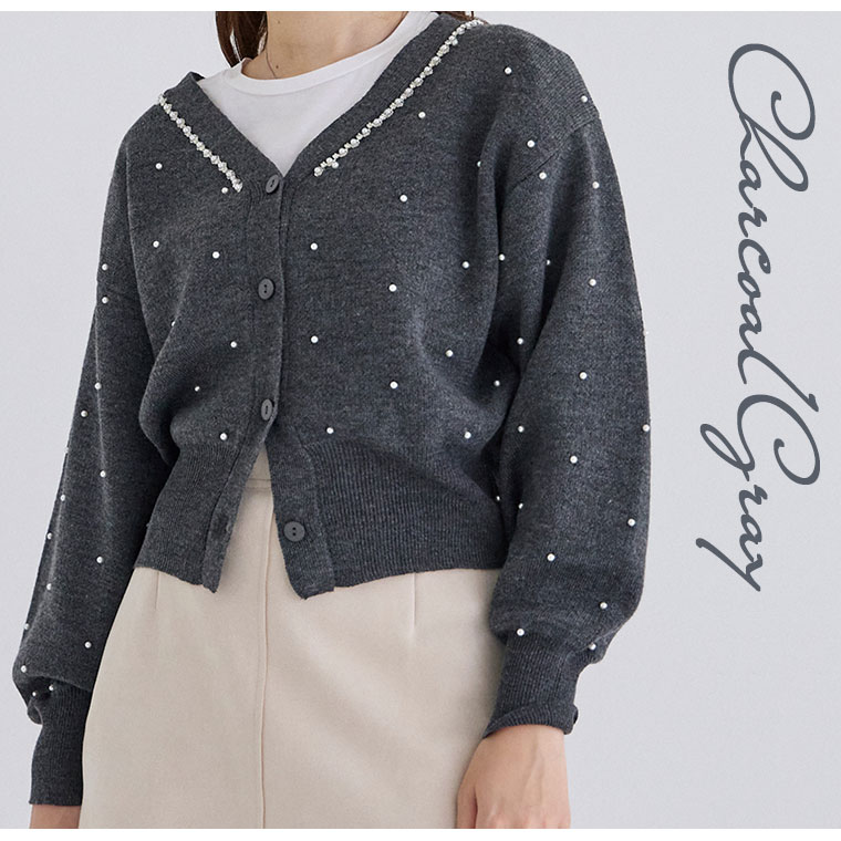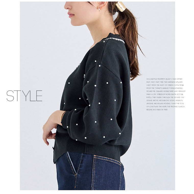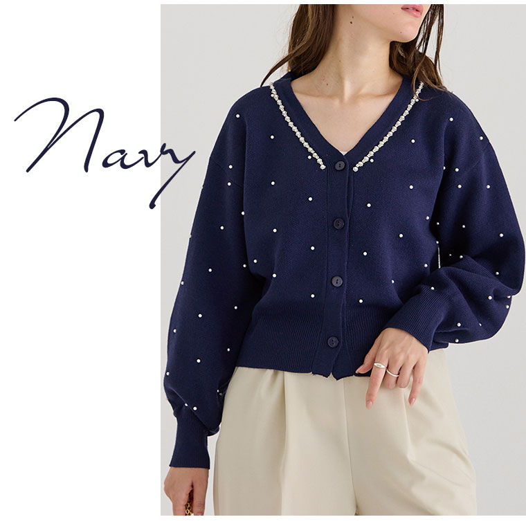 【LAVEANGE】パール&ビジュー使い ニットカーディガン