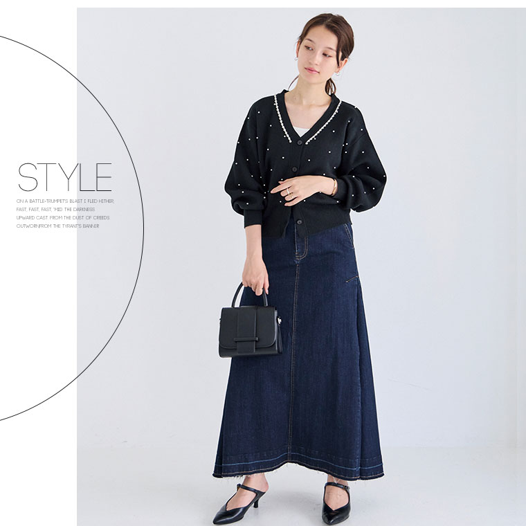 5. 大きいサイズ 【LAVEANGE】パール&ビジュー使い ニットカーディガン