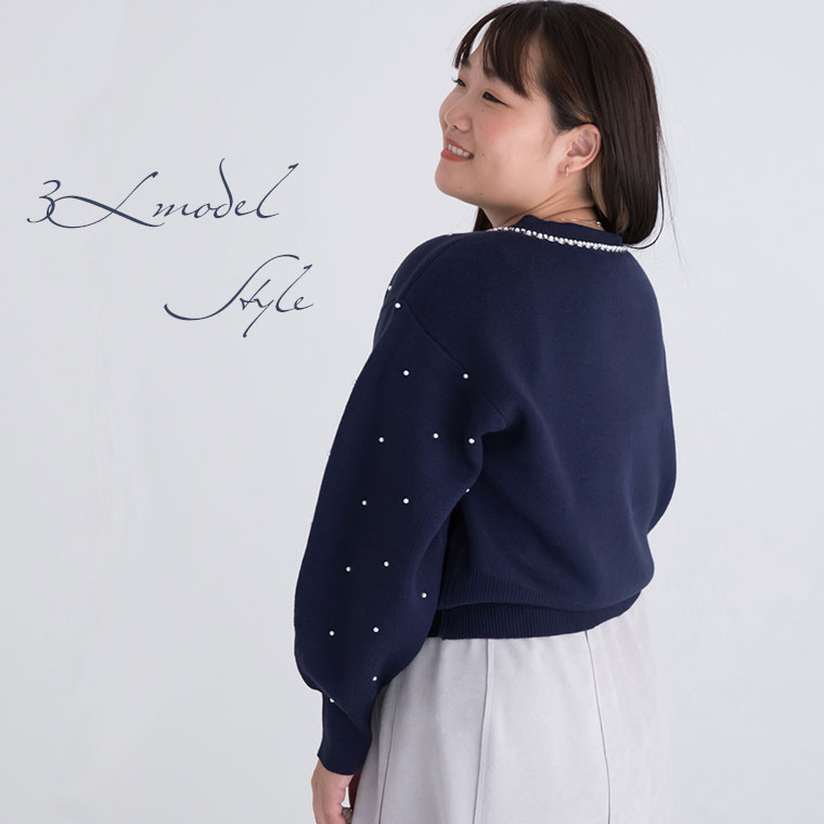 3. 大きいサイズ 【LAVEANGE】パール&ビジュー使い ニットカーディガン