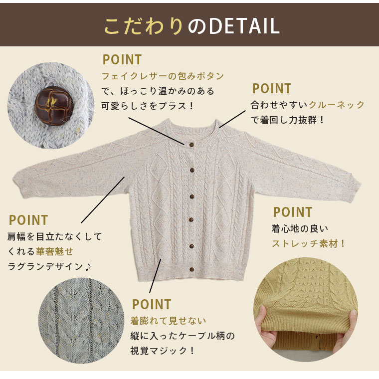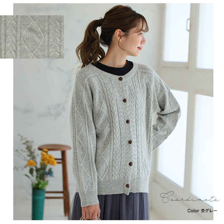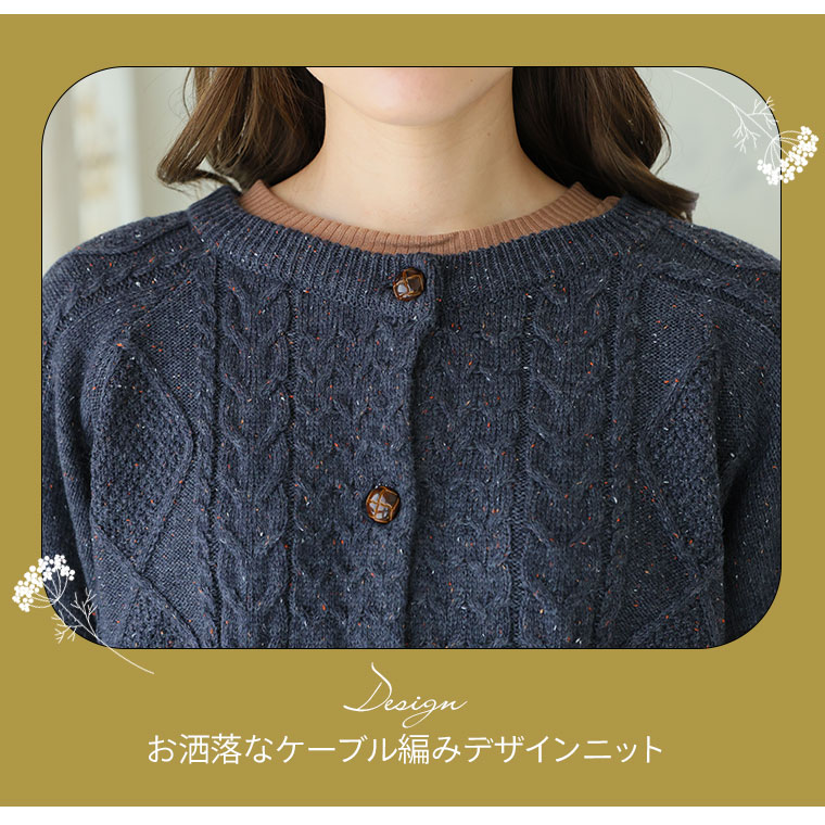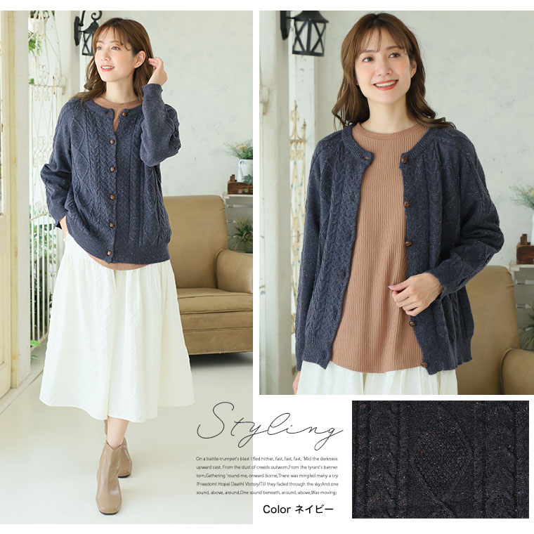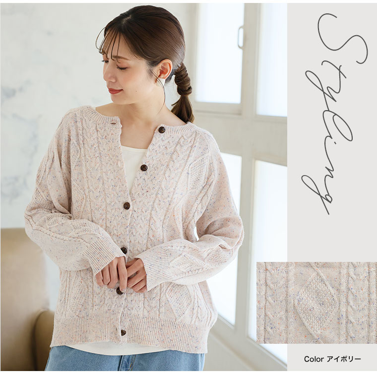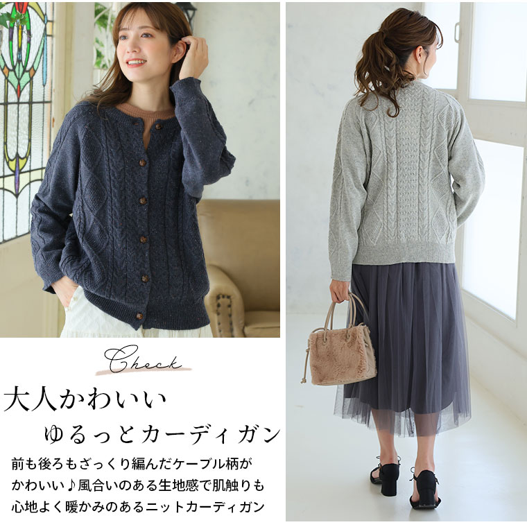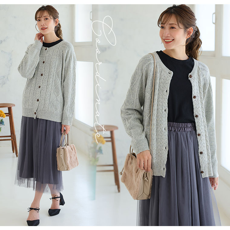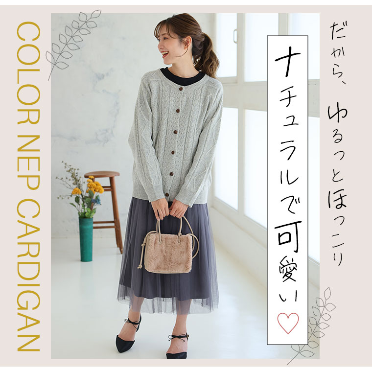 カラーネップでおしゃれにコーディネート!ケーブルニットカーディガン