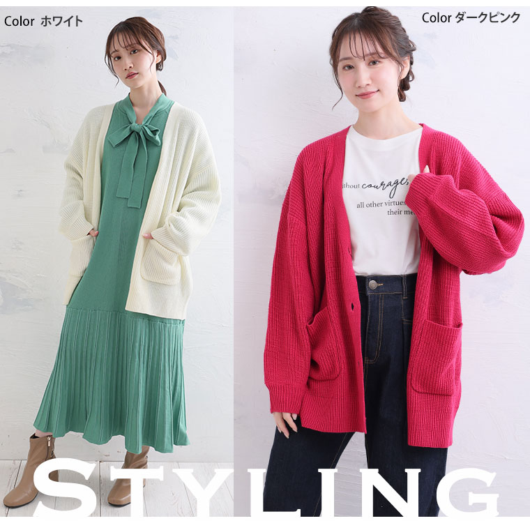 着ぶくれ回避! カラフルに遊ぶ華奢魅せ美人のニットカーデ