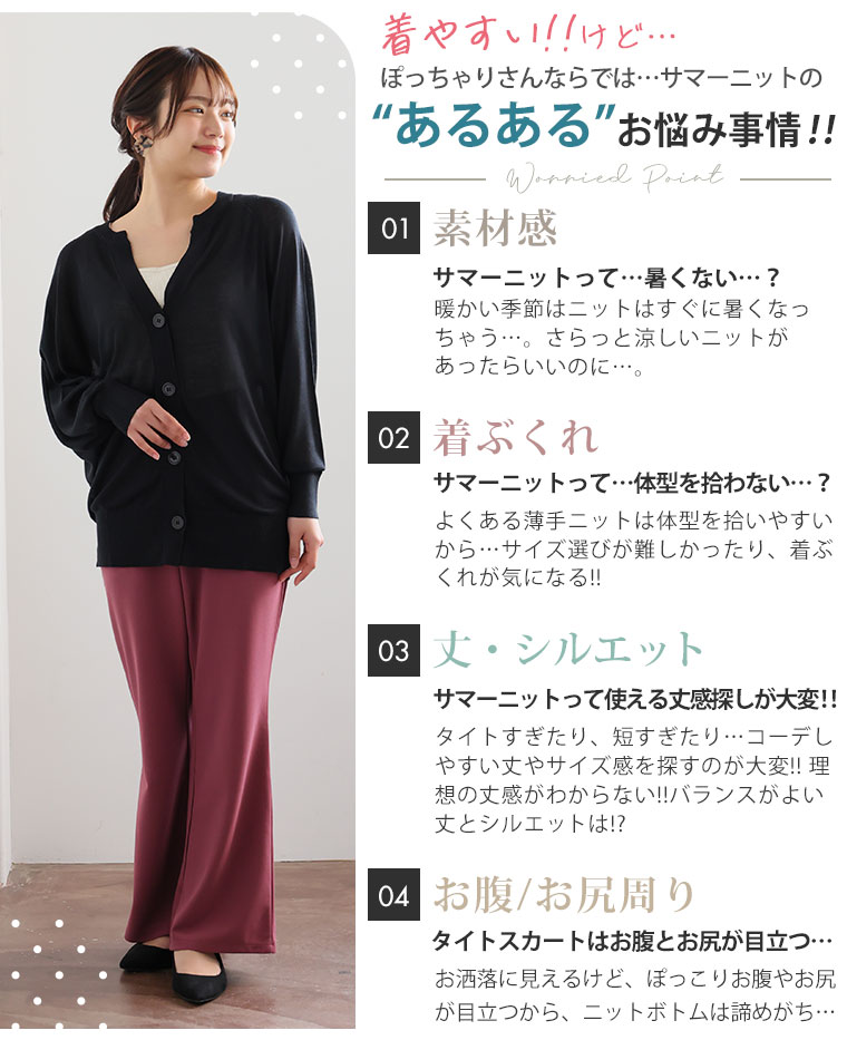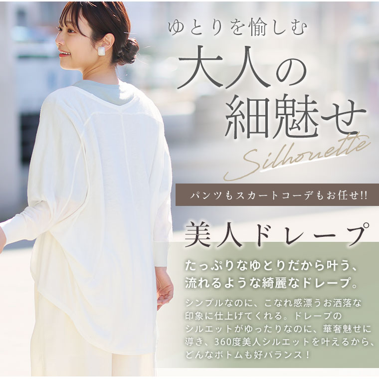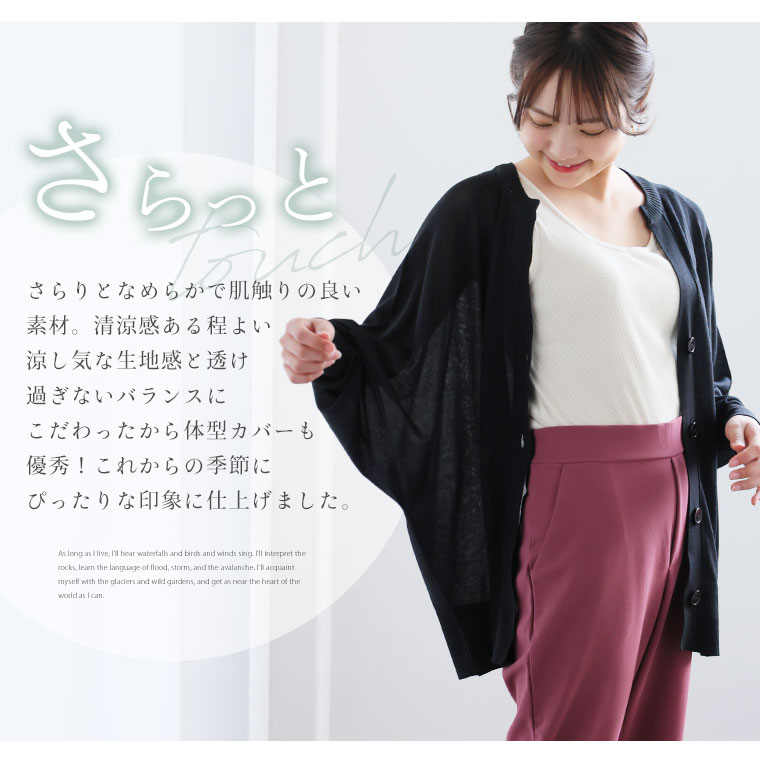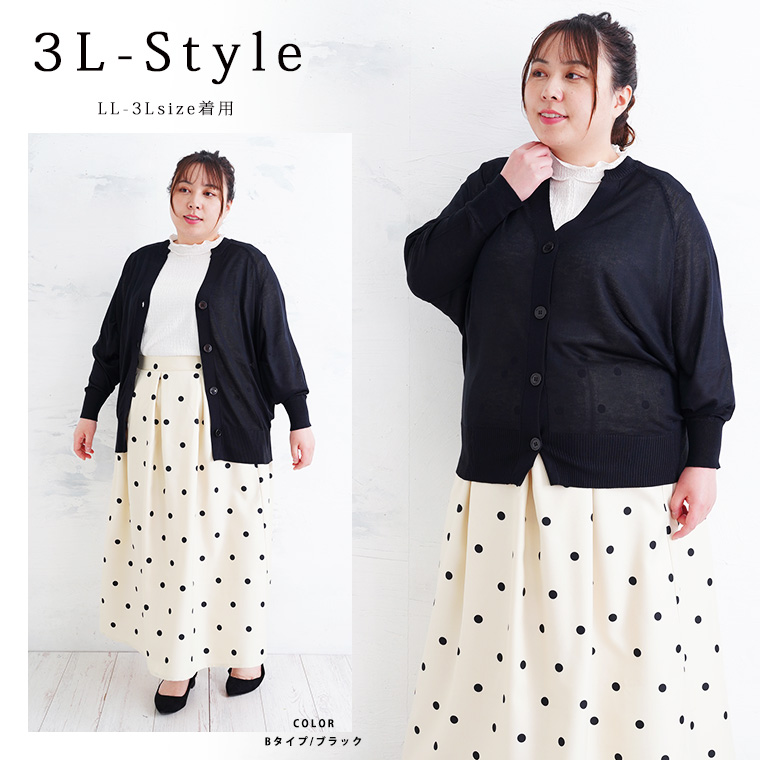 4L-5Lサイズ着用 ■着用感:ちょうどいい、■着丈:ヒップ半分、■バスト:ちょうどいい、■腕回り:ややゆったり、■袖口:ちょうどいい、■袖丈:長袖、■首回り:ちょうどいい、■ウエスト:-、■ヒップ:-、■太もも:- ●コンパクトに見えてゆったり着られて、着やすいです。さらっとしていて暑い季節に重宝しそうです。