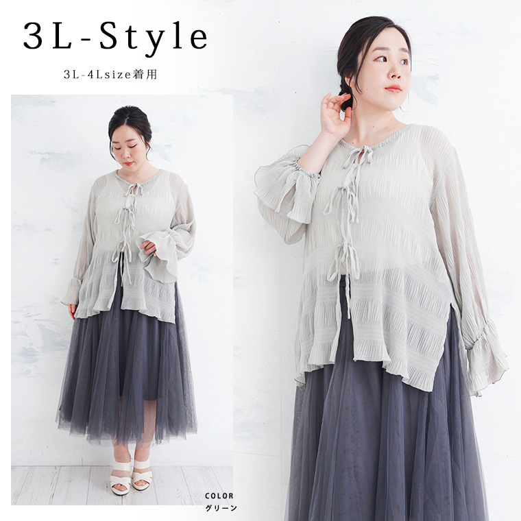 4. 大きいサイズ KAREN トリプルリボン シアーカーディガン