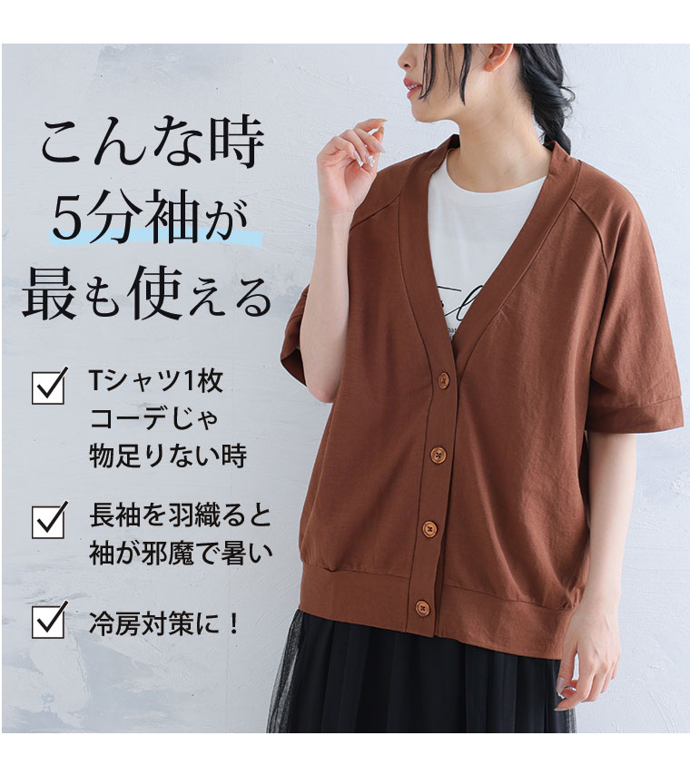 本気でひんやり冷たい!きちんと感が大人可愛い、五分袖カーディガン
