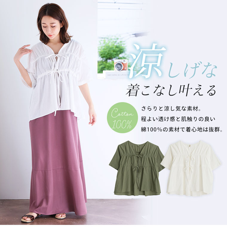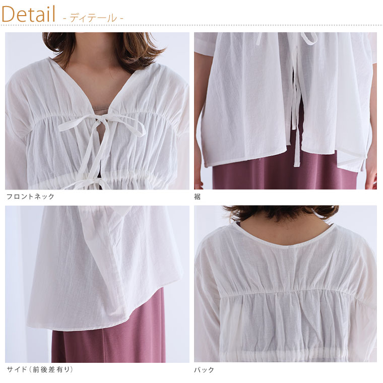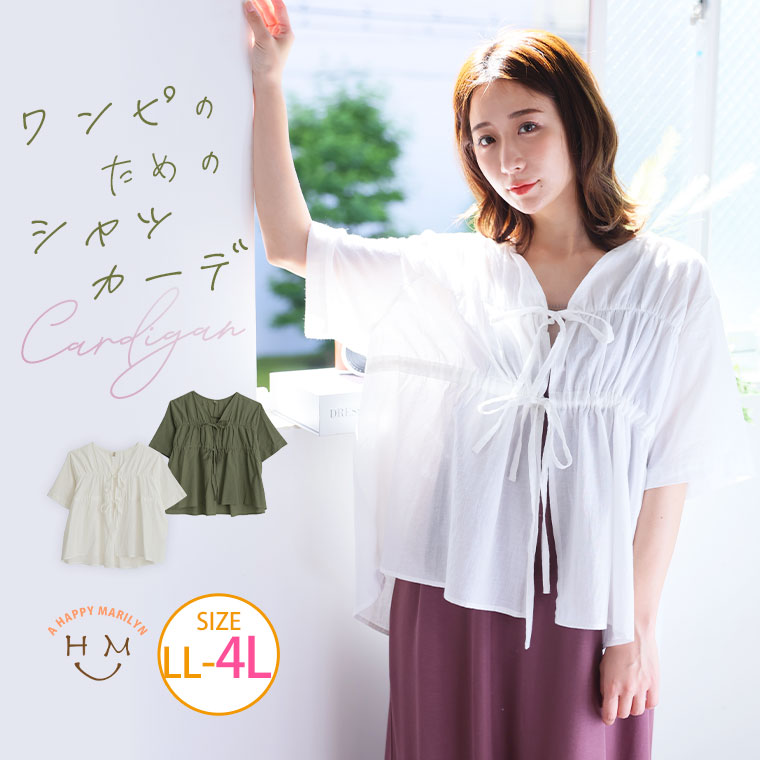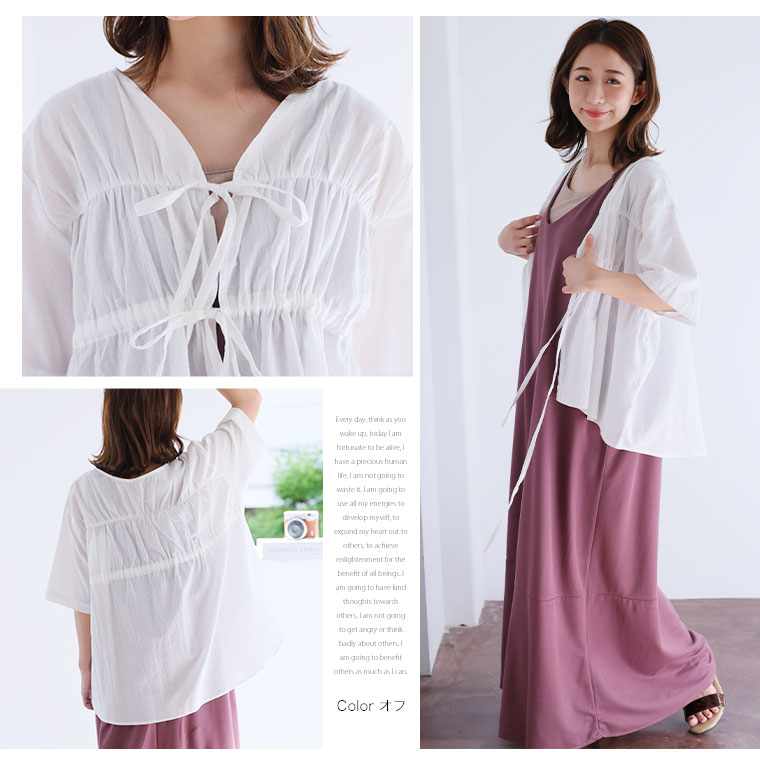 リボンが可愛い ワンピのためのショートシャツカーディガン